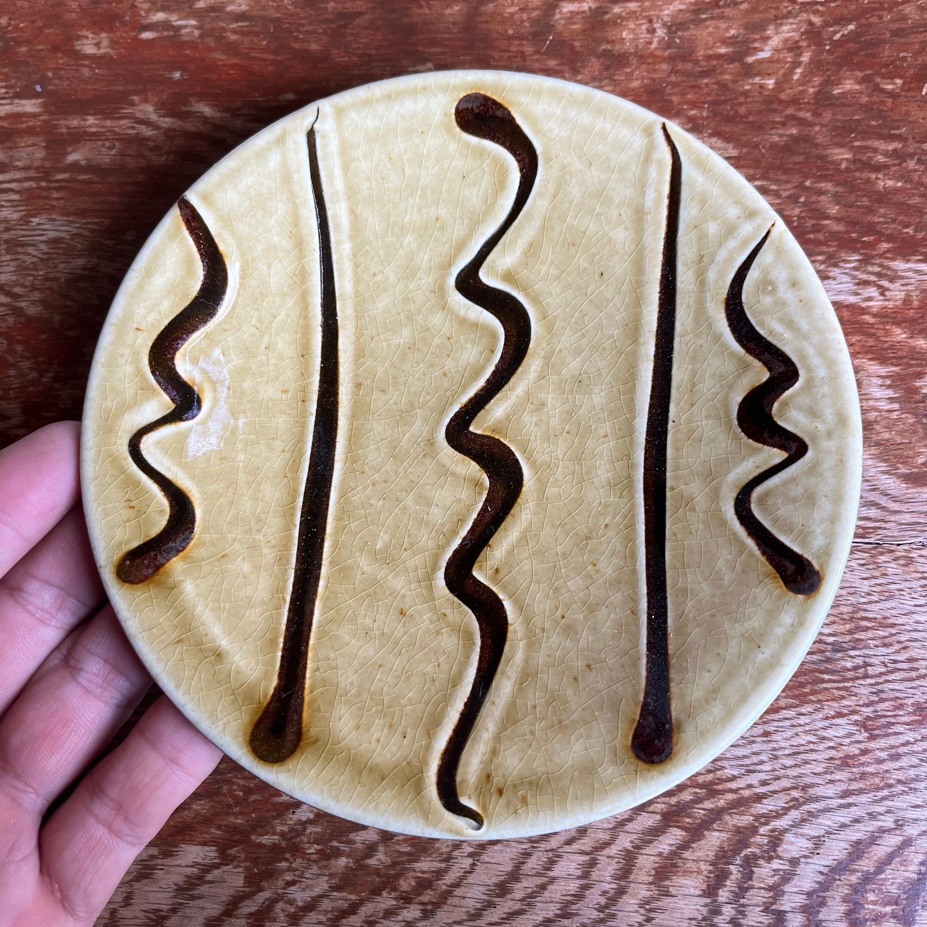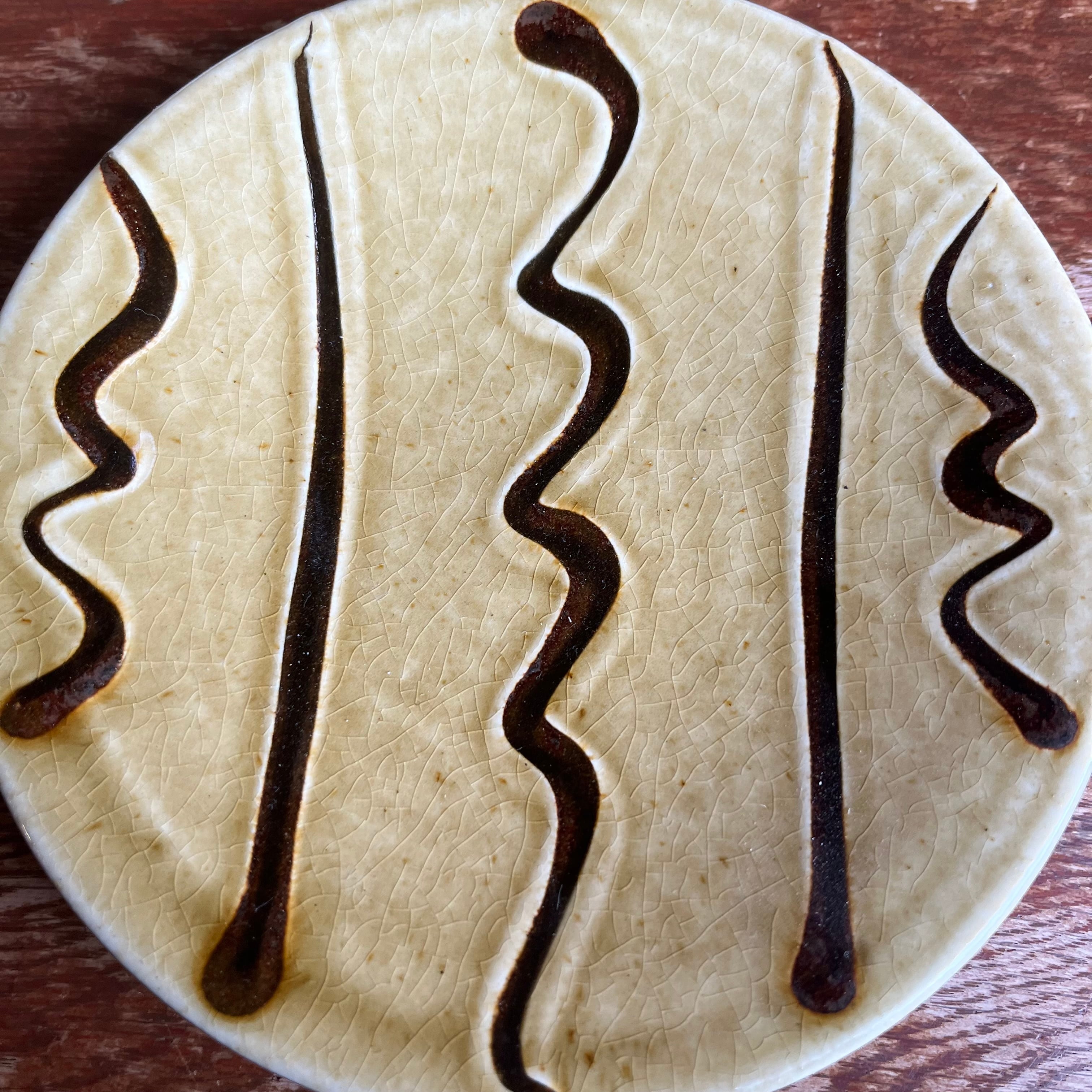 先々代の丹窓さんは、日本の民藝運動を牽引した柳宗悦らと親交がありました。バーナード・リーチが丹波を訪れた際は、丹窓窯さんを常宿とし、奥様・ジャネット・リーチは、丹窓窯で2年間修行されました。茂子さんのご主人である故・茂良さんは、イギリスのバーナード・リーチの工房で修行され、スリップウェアの技術を身につけて日本に戻ってこられました。現在は、茂良さんと共に50年以上、作陶を続けてこられた茂子さんが、茂良さんの遺志を引き継いで、うつわを作り続けておられます。