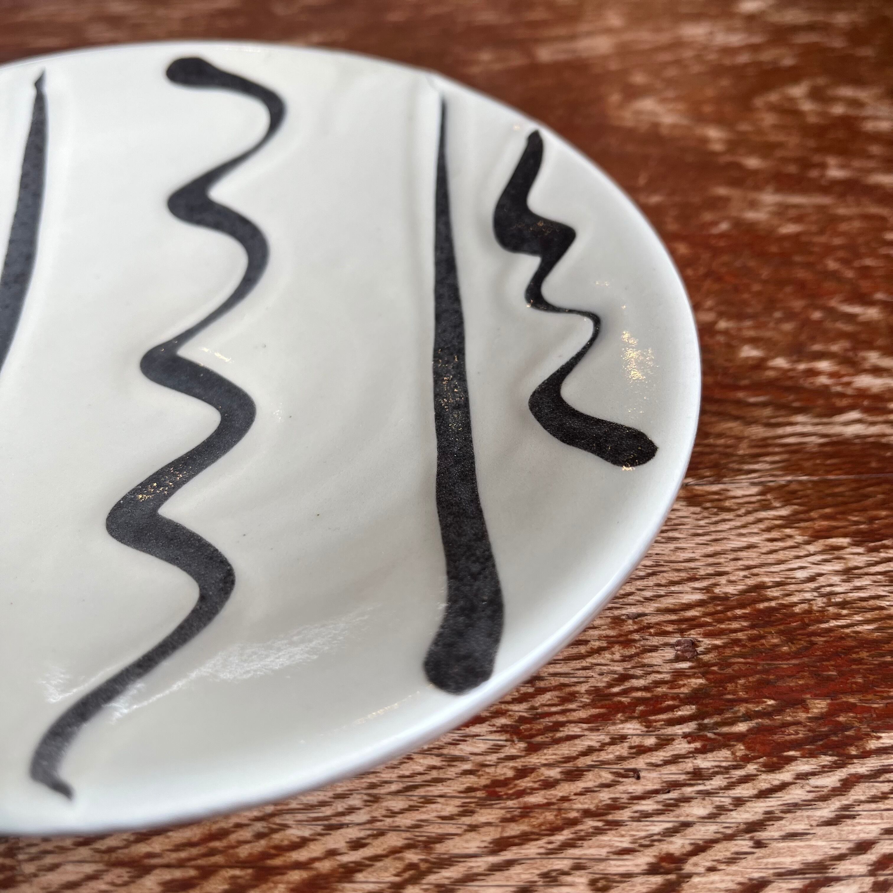 先々代の丹窓さんは、日本の民藝運動を牽引した柳宗悦らと親交がありました。バーナード・リーチが丹波を訪れた際は、丹窓窯さんを常宿とし、奥様・ジャネット・リーチは、丹窓窯で2年間修行されました。茂子さんのご主人である故・茂良さんは、イギリスのバーナード・リーチの工房で修行され、スリップウェアの技術を身につけて日本に戻ってこられました。現在は、茂良さんと共に50年以上、作陶を続けてこられた茂子さんが、茂良さんの遺志を引き継いで、うつわを作り続けておられます。