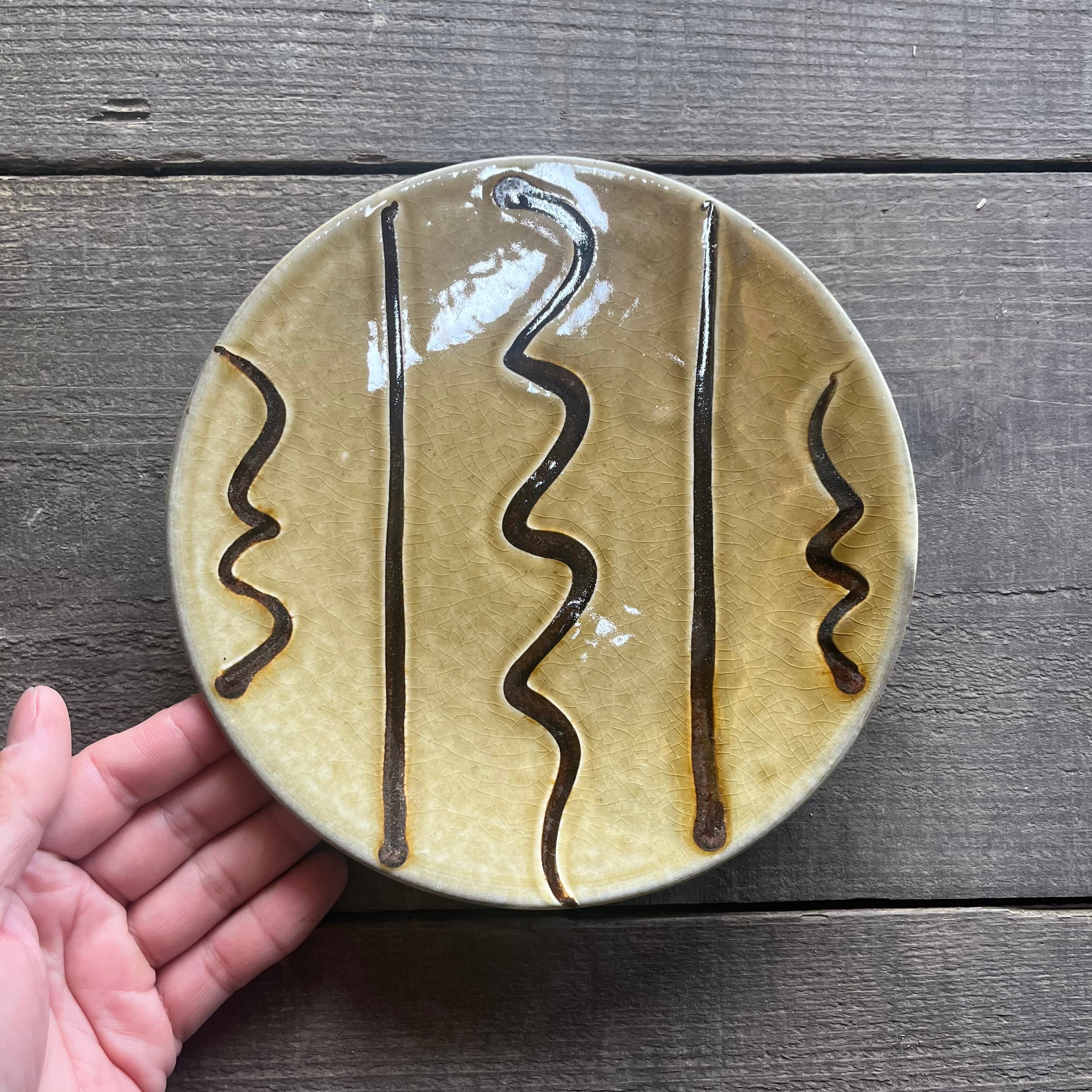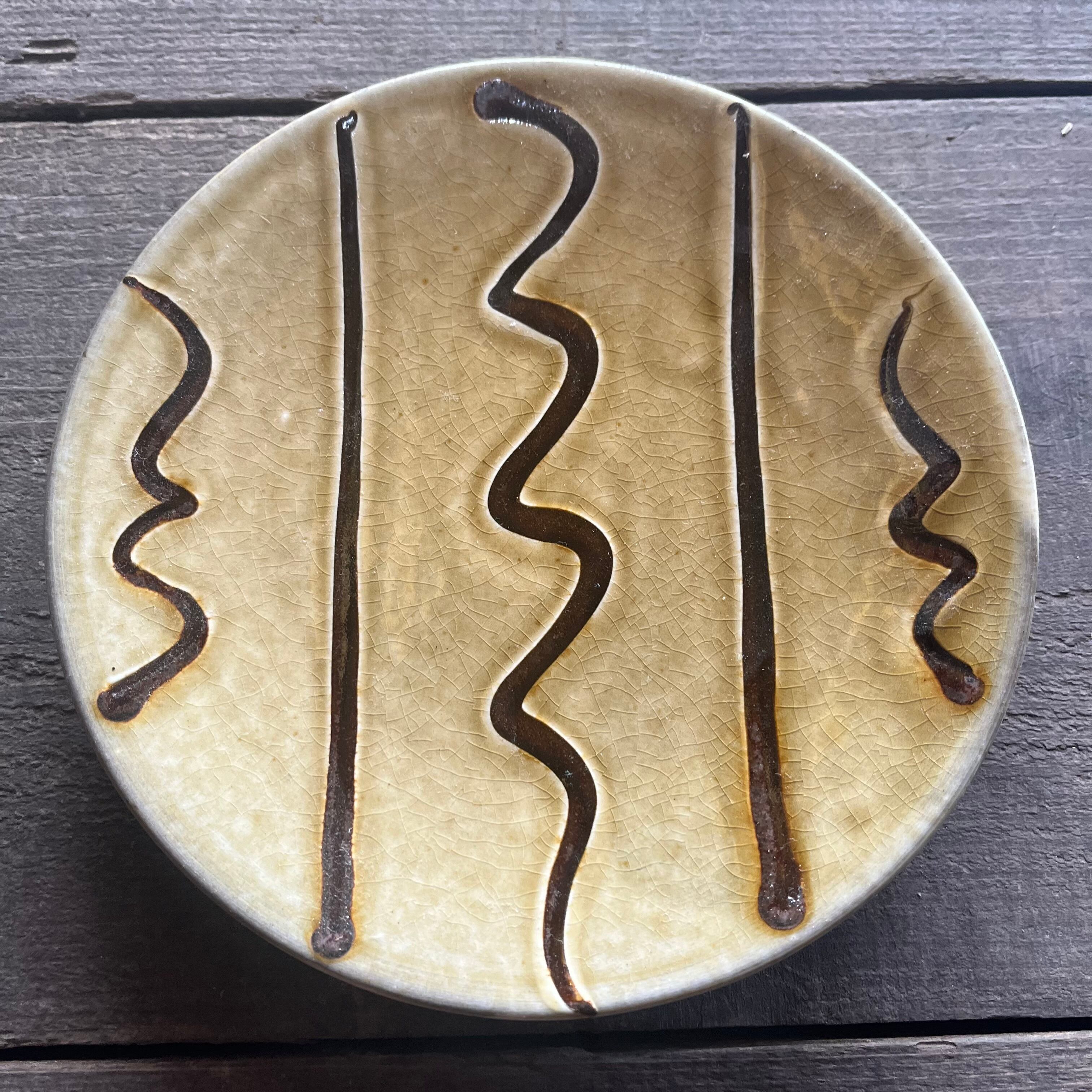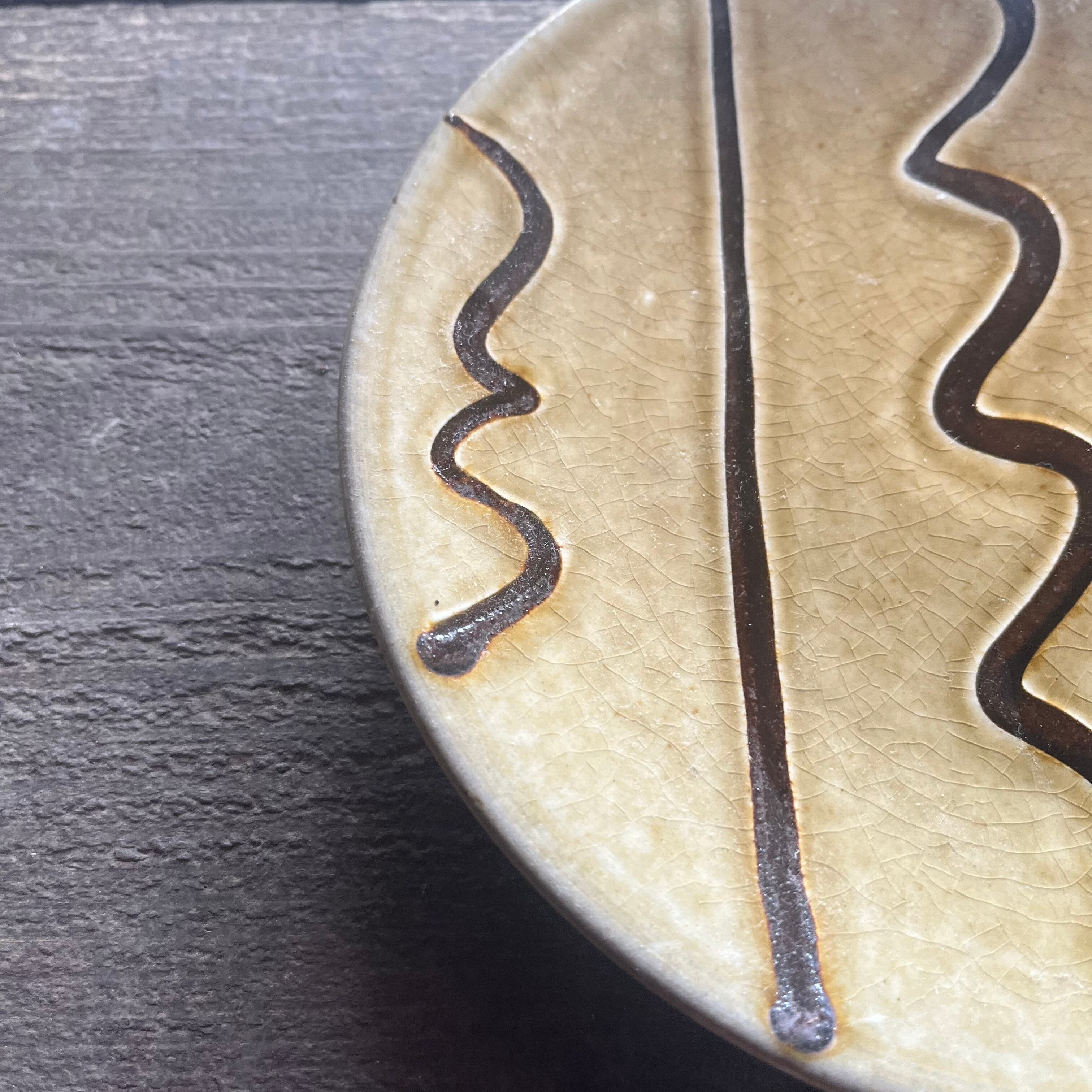 先々代の丹窓さんは、日本の民藝運動を牽引した柳宗悦らと親交がありました。バーナード・リーチが丹波を訪れた際は、丹窓窯さんを常宿とし、奥様・ジャネット・リーチは、丹窓窯で2年間修行されました。茂子さんのご主人である故・茂良さんは、イギリスのバーナード・リーチの工房で修行され、スリップウェアの技術を身につけて日本に戻ってこられました。現在は、茂良さんと共に50年以上、作陶を続けてこられた茂子さんが、茂良さんの遺志を引き継いで、うつわを作り続けておられます。