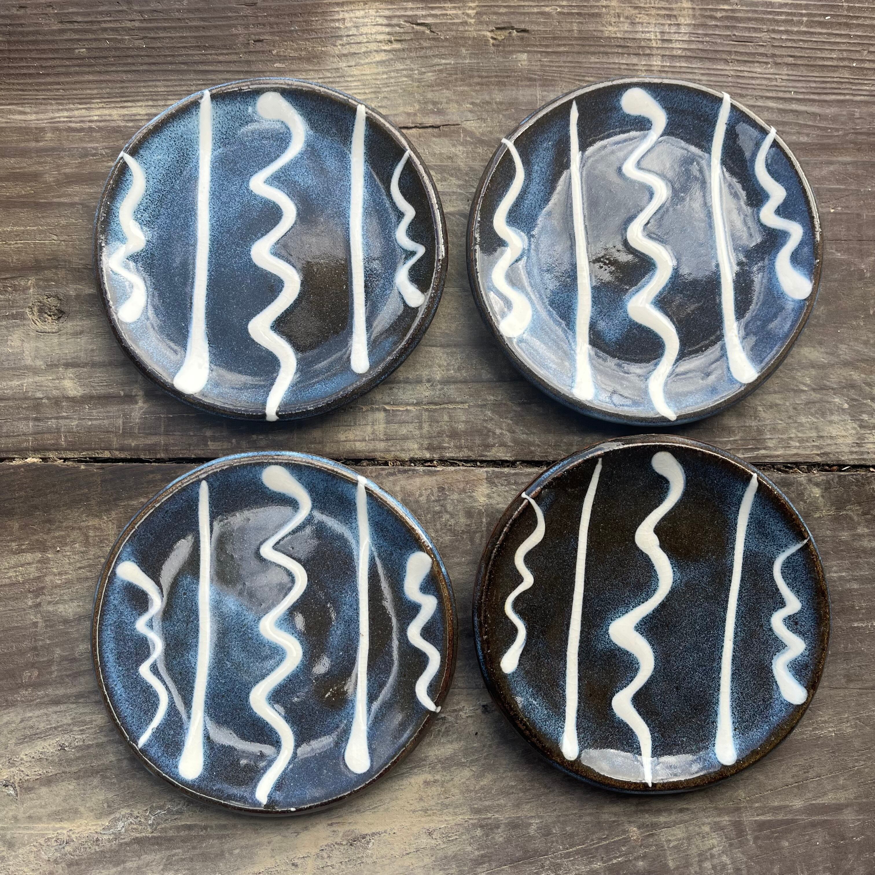 先々代の丹窓さんは、日本の民藝運動を牽引した柳宗悦らと親交がありました。バーナード・リーチが丹波を訪れた際は、丹窓窯さんを常宿とし、奥様・ジャネット・リーチは、丹窓窯で2年間修行されました。茂子さんのご主人である故・茂良さんは、イギリスのバーナード・リーチの工房で修行され、スリップウェアの技術を身につけて日本に戻ってこられました。現在は、茂良さんと共に50年以上、作陶を続けてこられた茂子さんが、茂良さんの遺志を引き継いで、うつわを作り続けておられます。