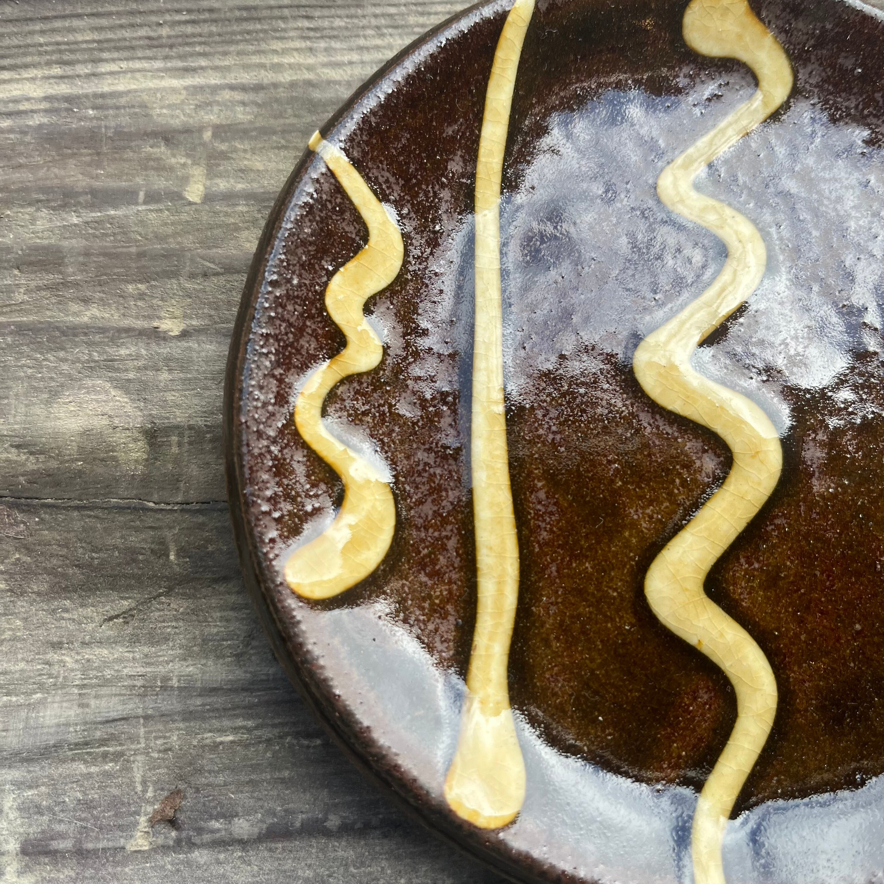 先々代の丹窓さんは、日本の民藝運動を牽引した柳宗悦らと親交がありました。バーナード・リーチが丹波を訪れた際は、丹窓窯さんを常宿とし、奥様・ジャネット・リーチは、丹窓窯で2年間修行されました。茂子さんのご主人である故・茂良さんは、イギリスのバーナード・リーチの工房で修行され、スリップウェアの技術を身につけて日本に戻ってこられました。現在は、茂良さんと共に50年以上、作陶を続けてこられた茂子さんが、茂良さんの遺志を引き継いで、うつわを作り続けておられます。