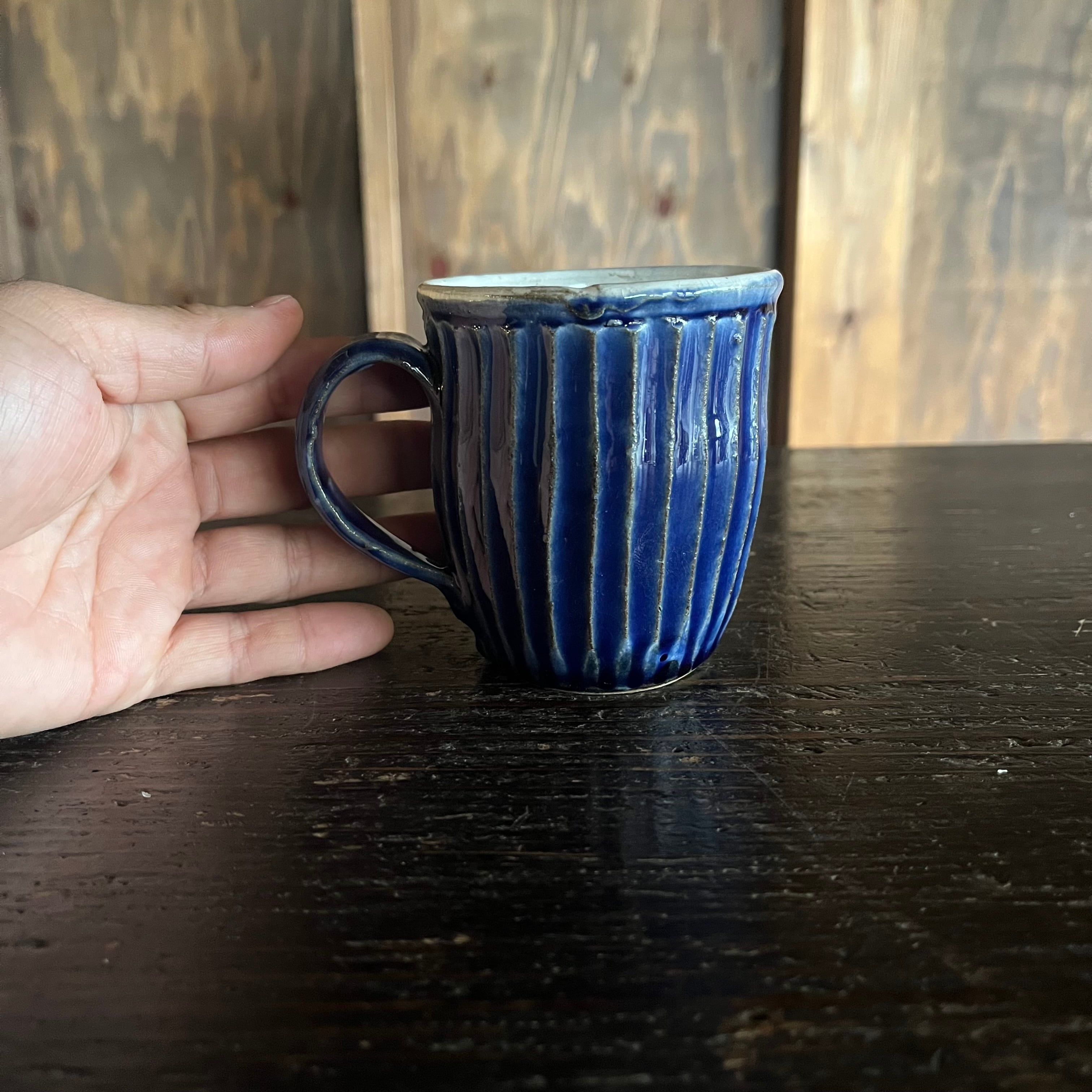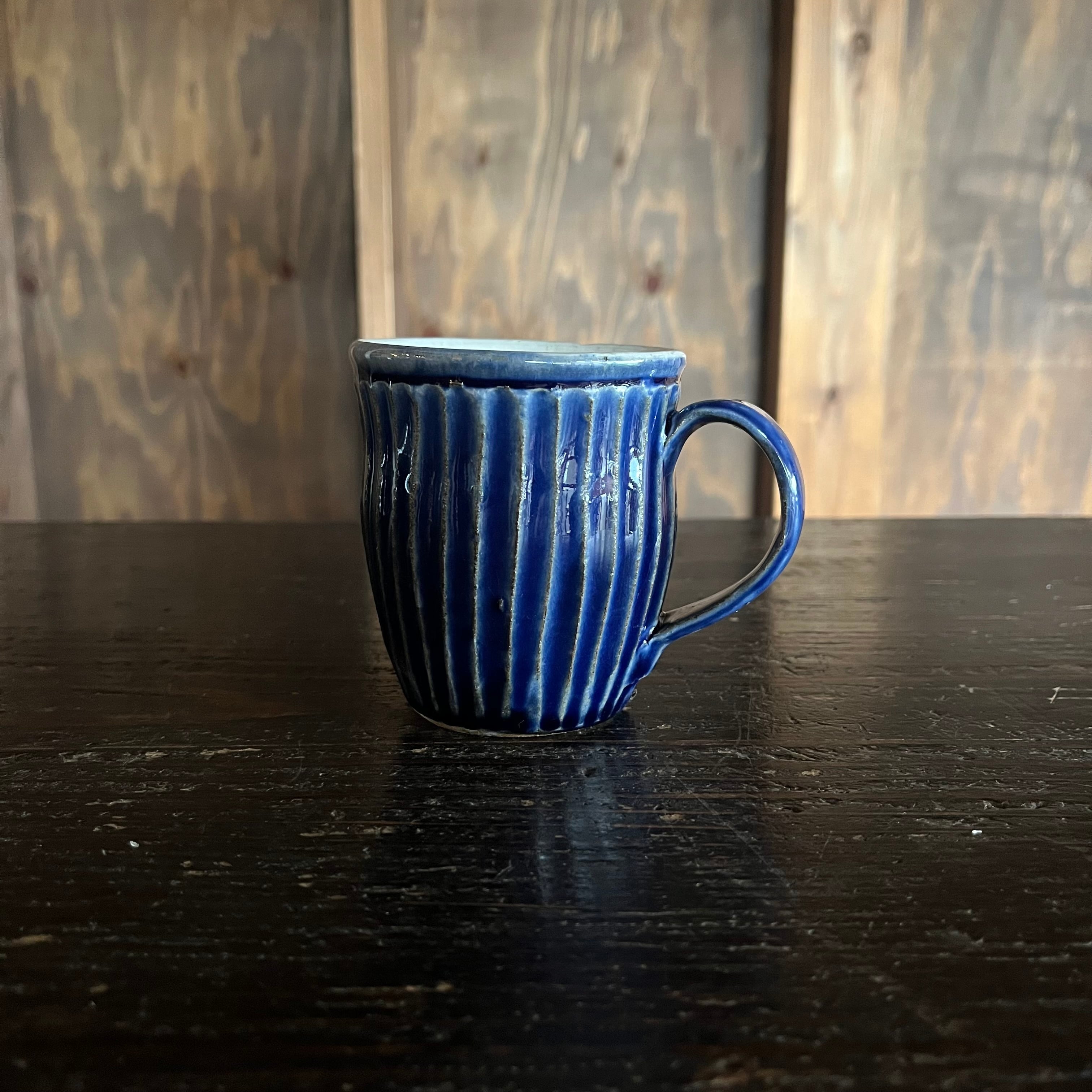 丹波焼 俊彦窯 マグカップ 鎬手 呉須釉