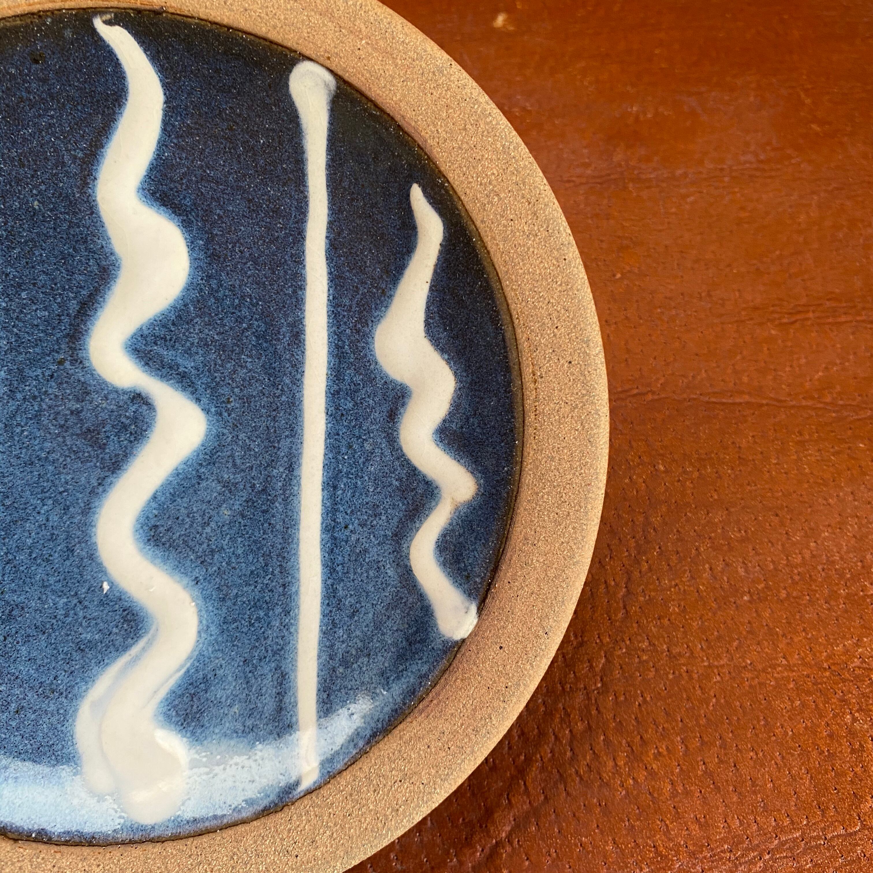 丹波立杭焼 丹窓窯 5寸平皿 イッチン 青