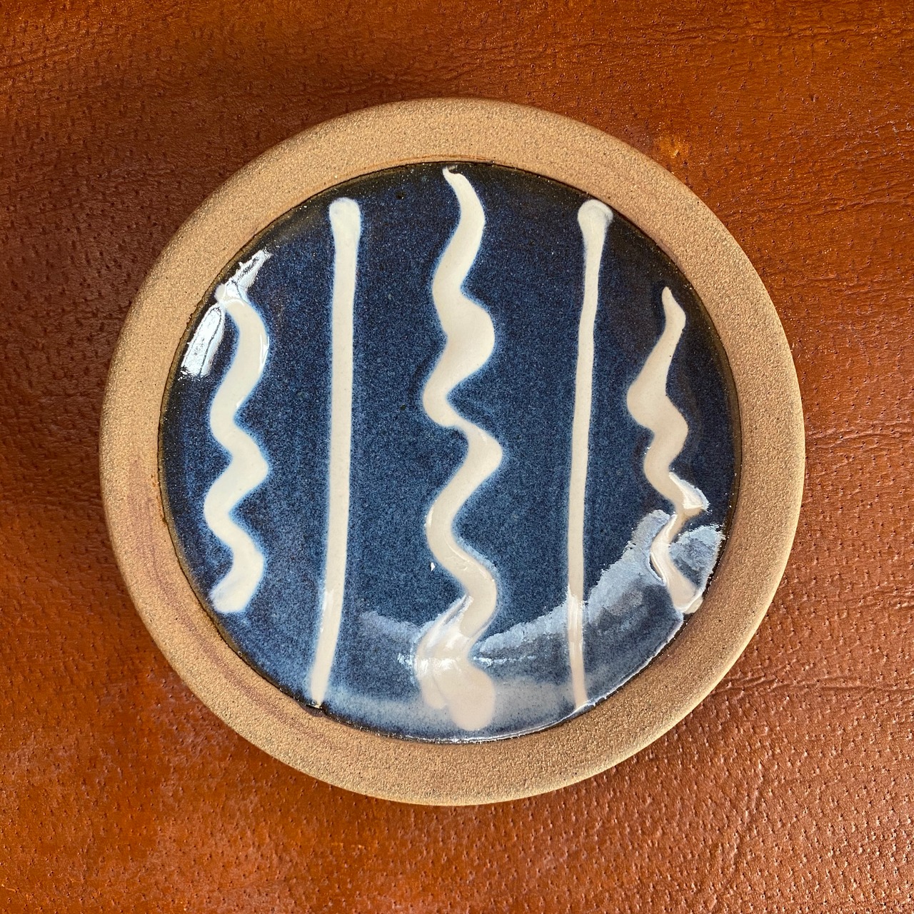 15.丹波焼 丹窓窯 5寸平皿 イッチン 青