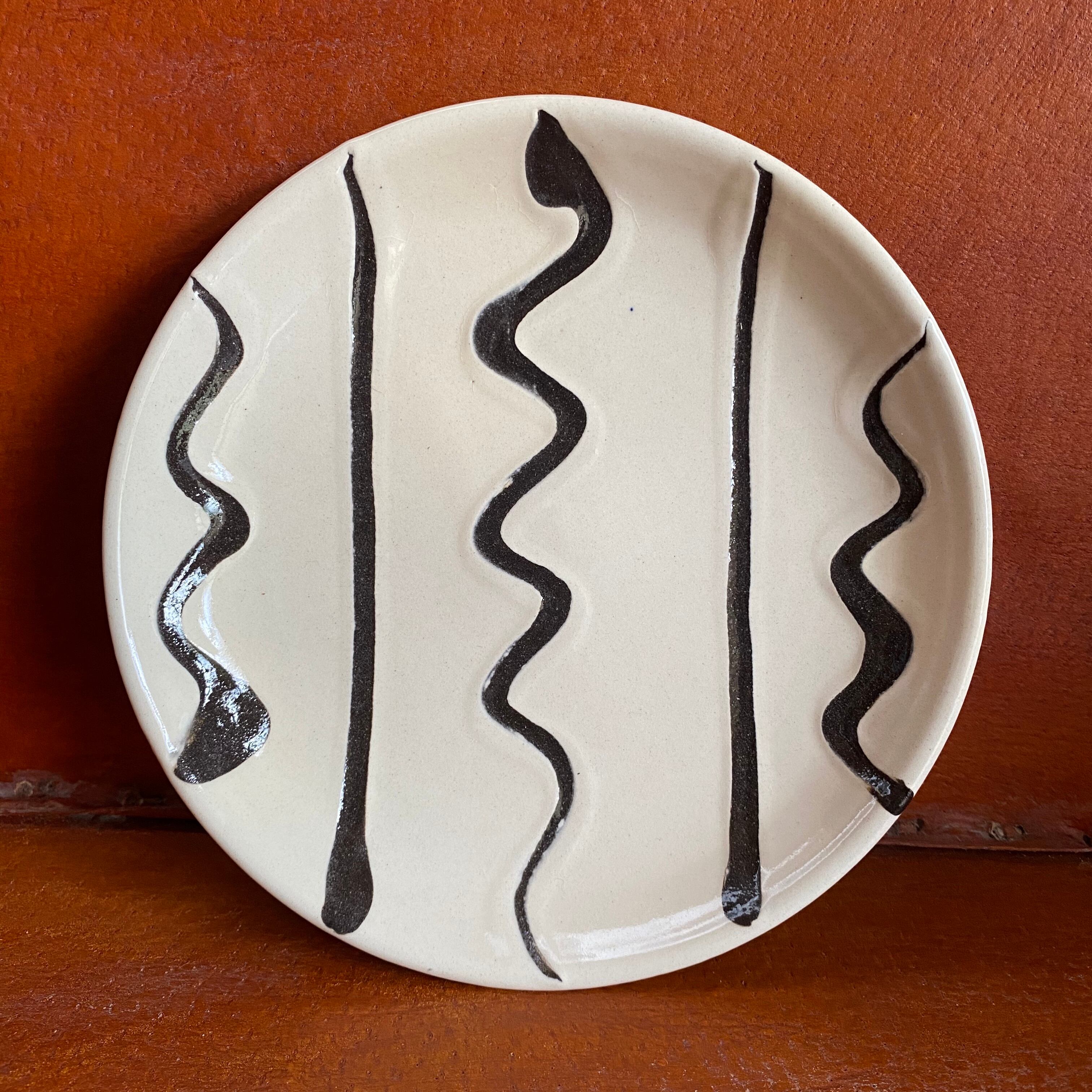 丹波立杭焼 丹窓窯 6寸皿 イッチン 白
