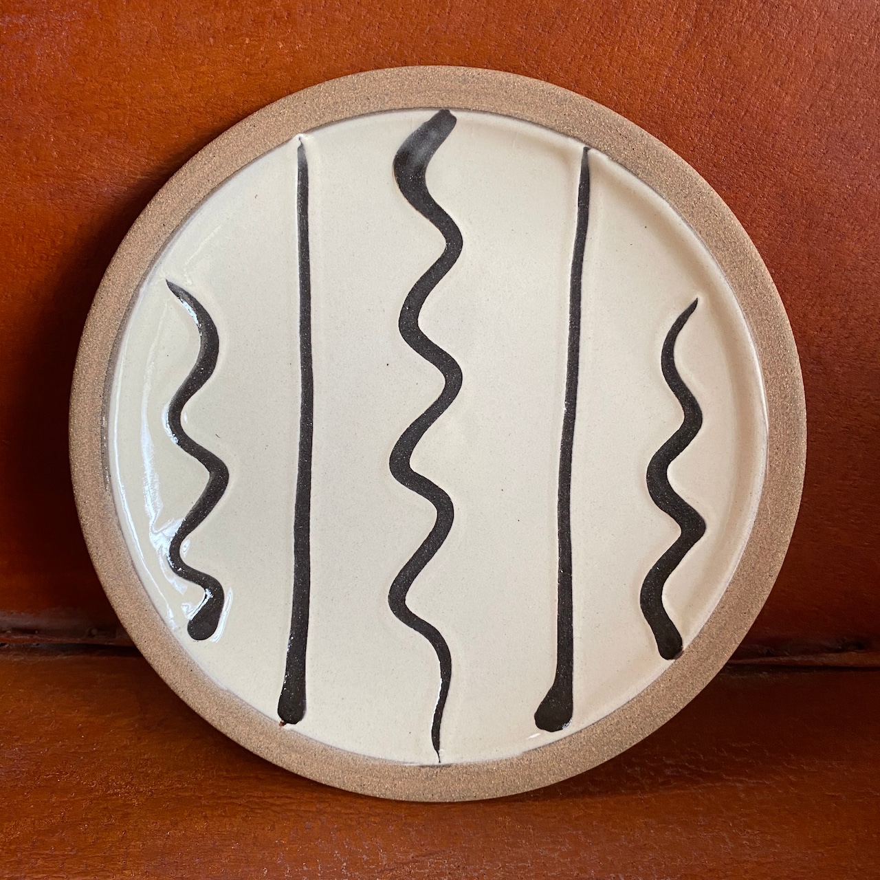 丹波立杭焼 丹窓窯 6寸皿 イッチン 白