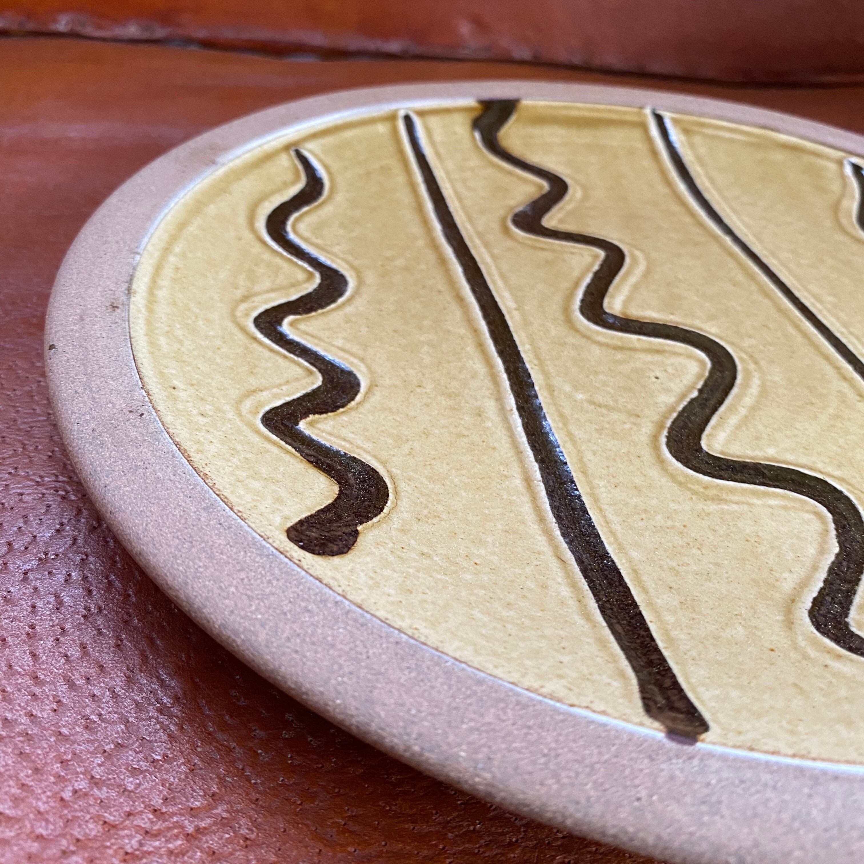 40.丹波焼 丹窓窯 8寸平皿 イッチン 黄