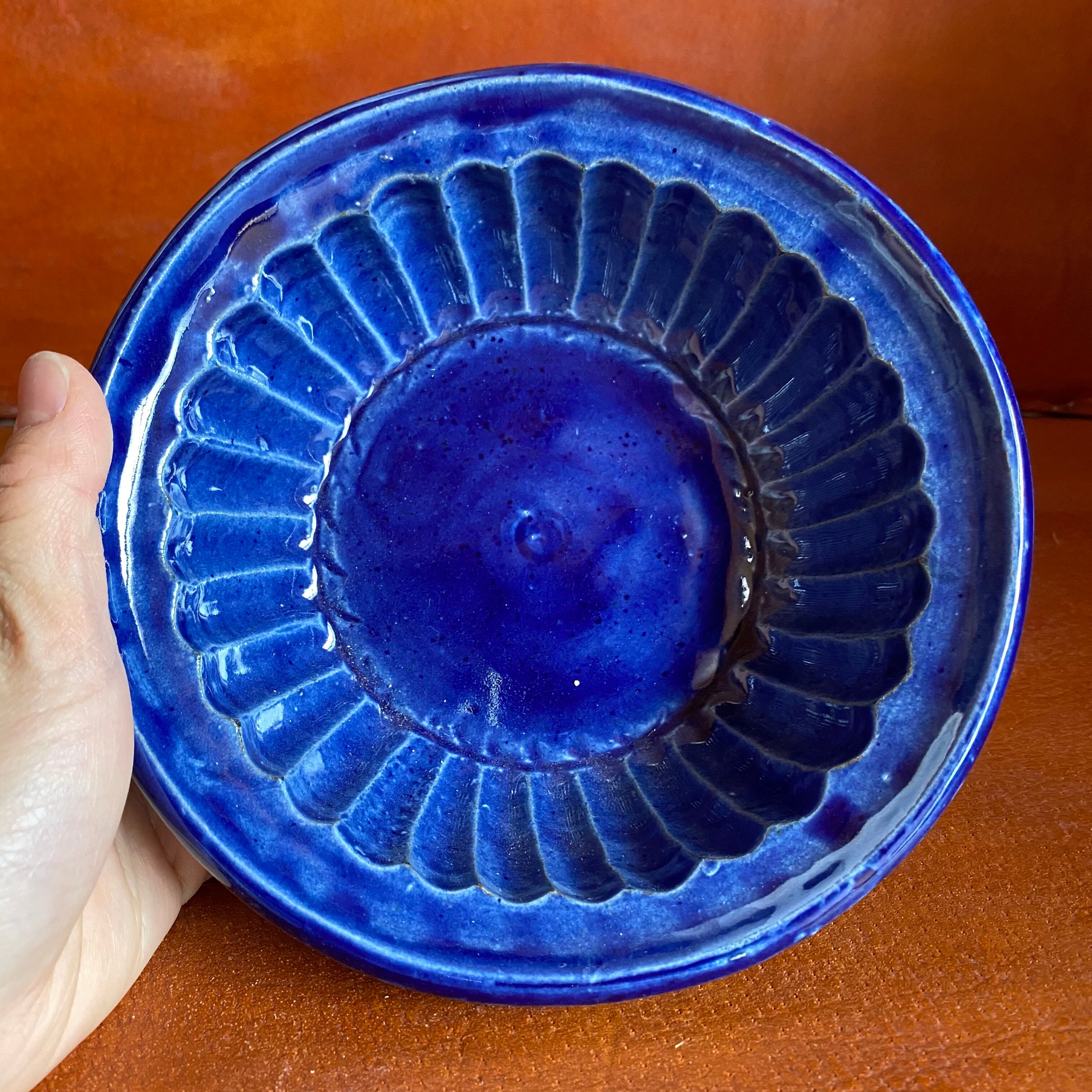 71.丹波焼 俊彦窯 6寸鉢 鎬手 呉須釉