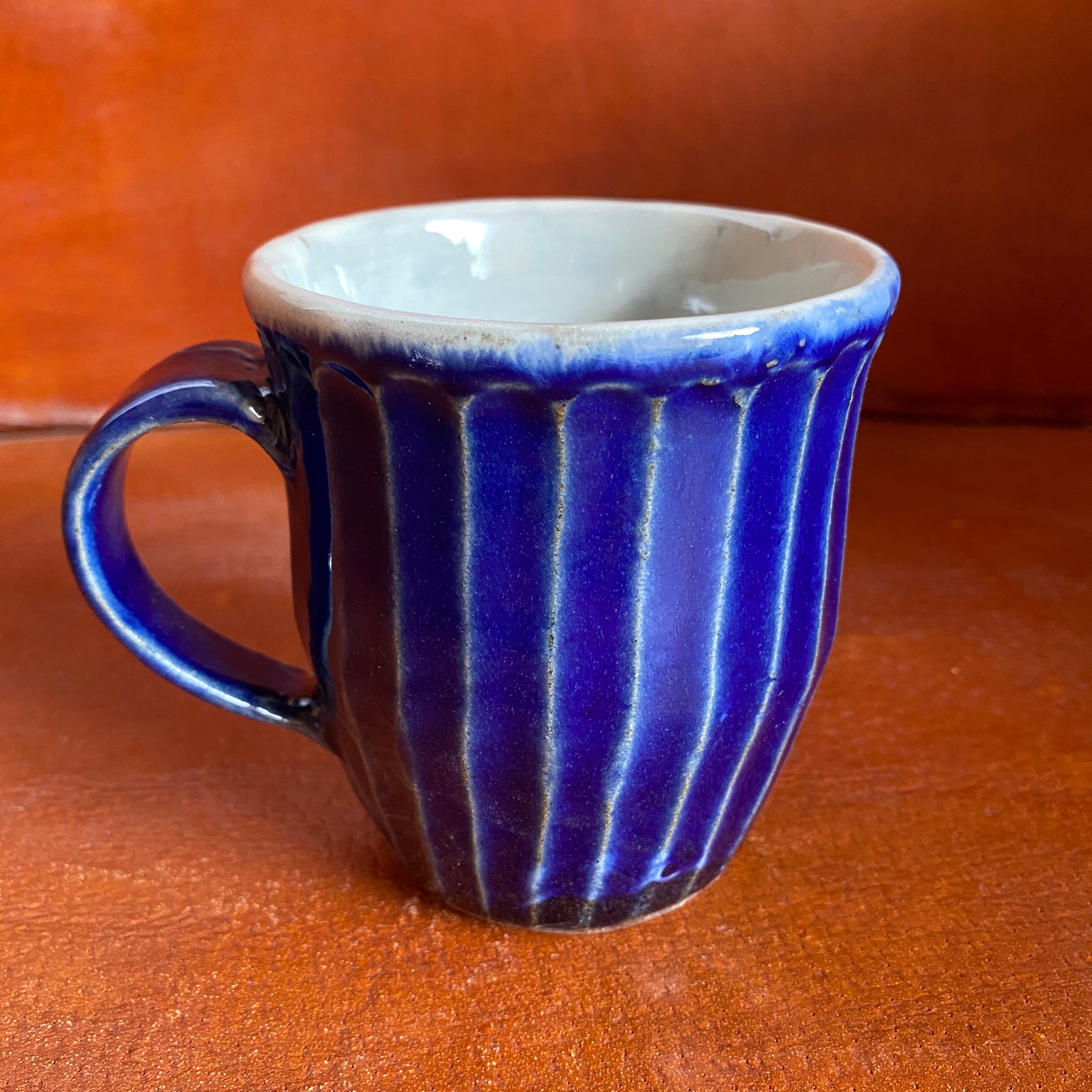 77.丹波焼 俊彦窯 マグカップ 鎬手 呉須釉