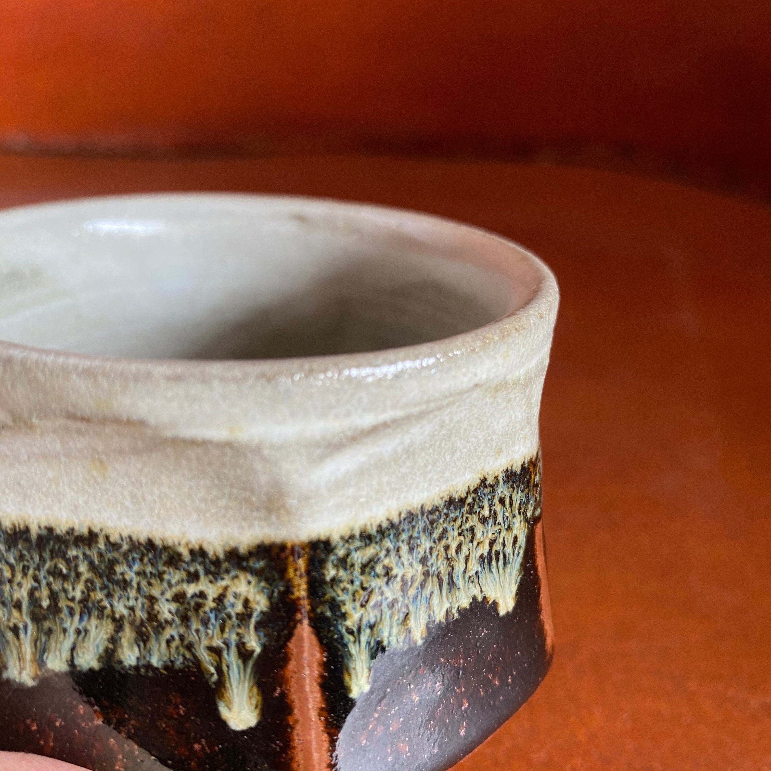 81.丹波焼 俊彦窯 湯呑み 面取り 掛け分け