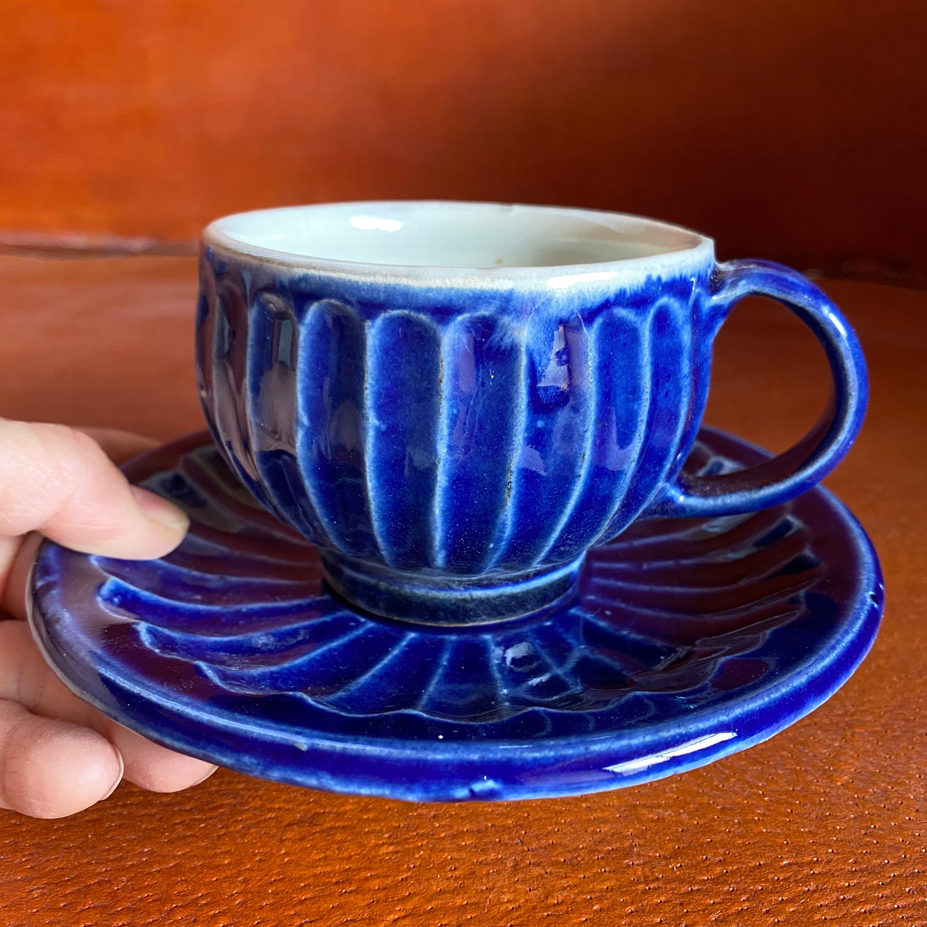 丹波焼 俊彦窯 カップ&ソーサー 鎬手 呉須釉
