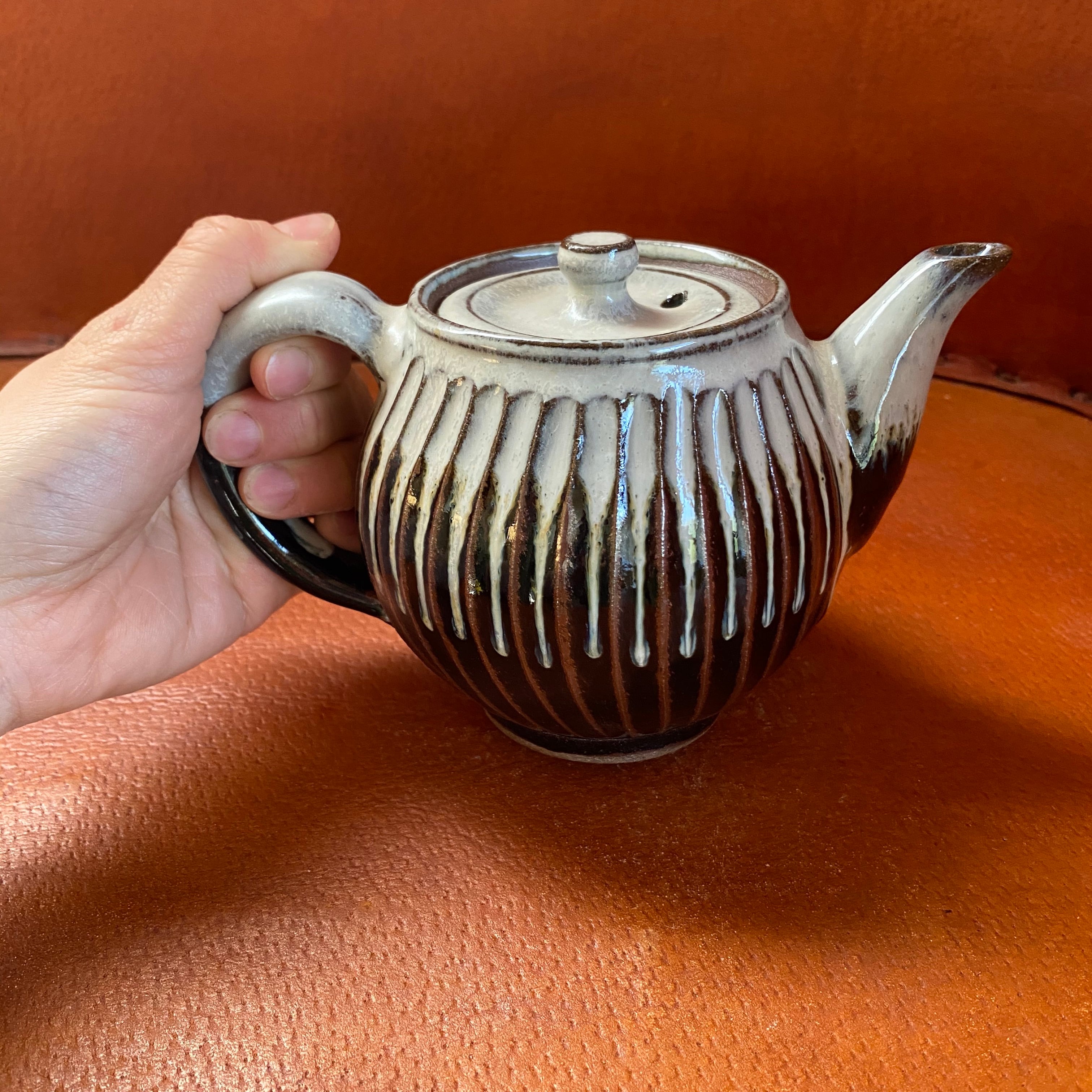 カンナで削り出す美しいしのぎは、ただの装飾ではなく、手に馴染み、滑りにくくなる、実用性も兼ねた丹波焼を代表する技法です。