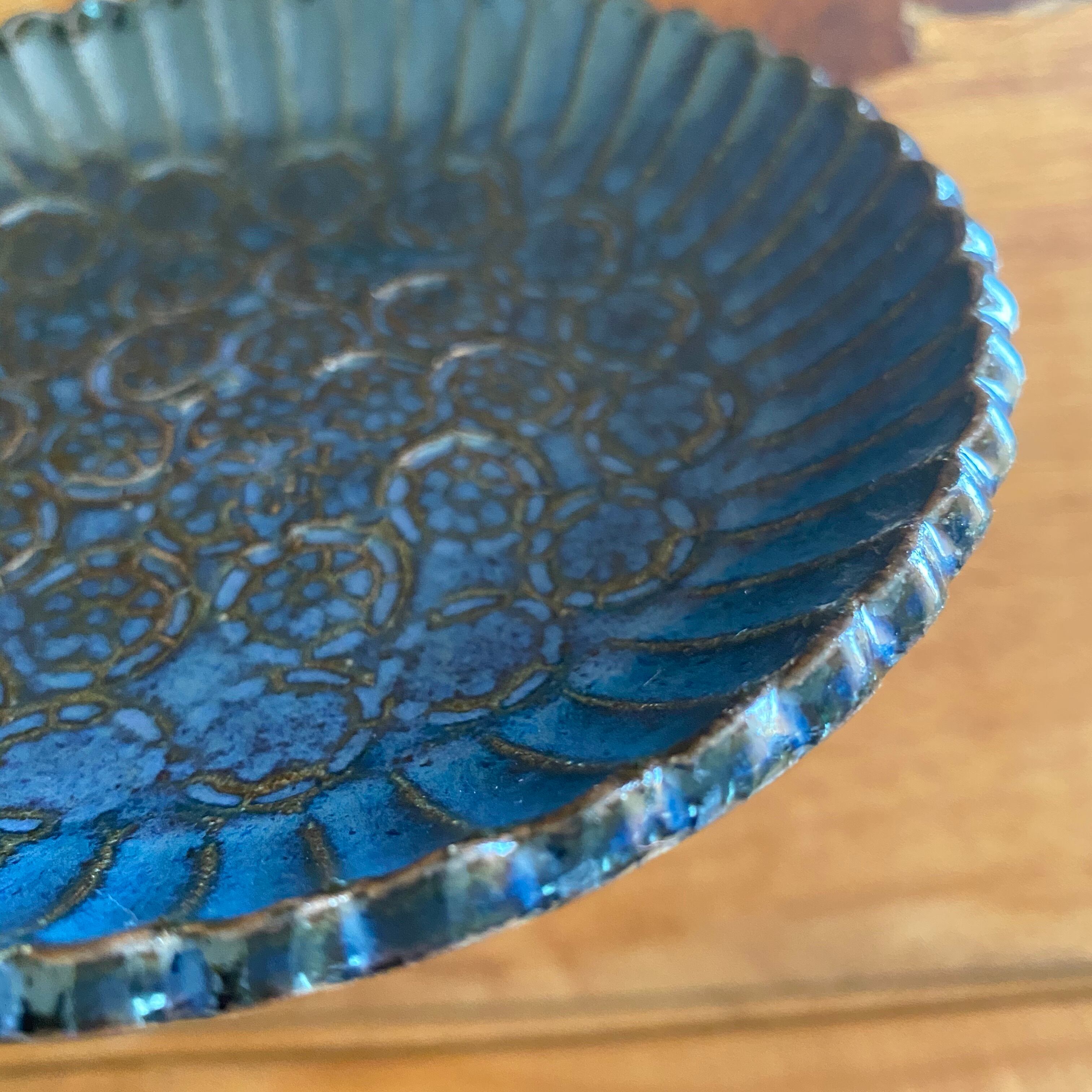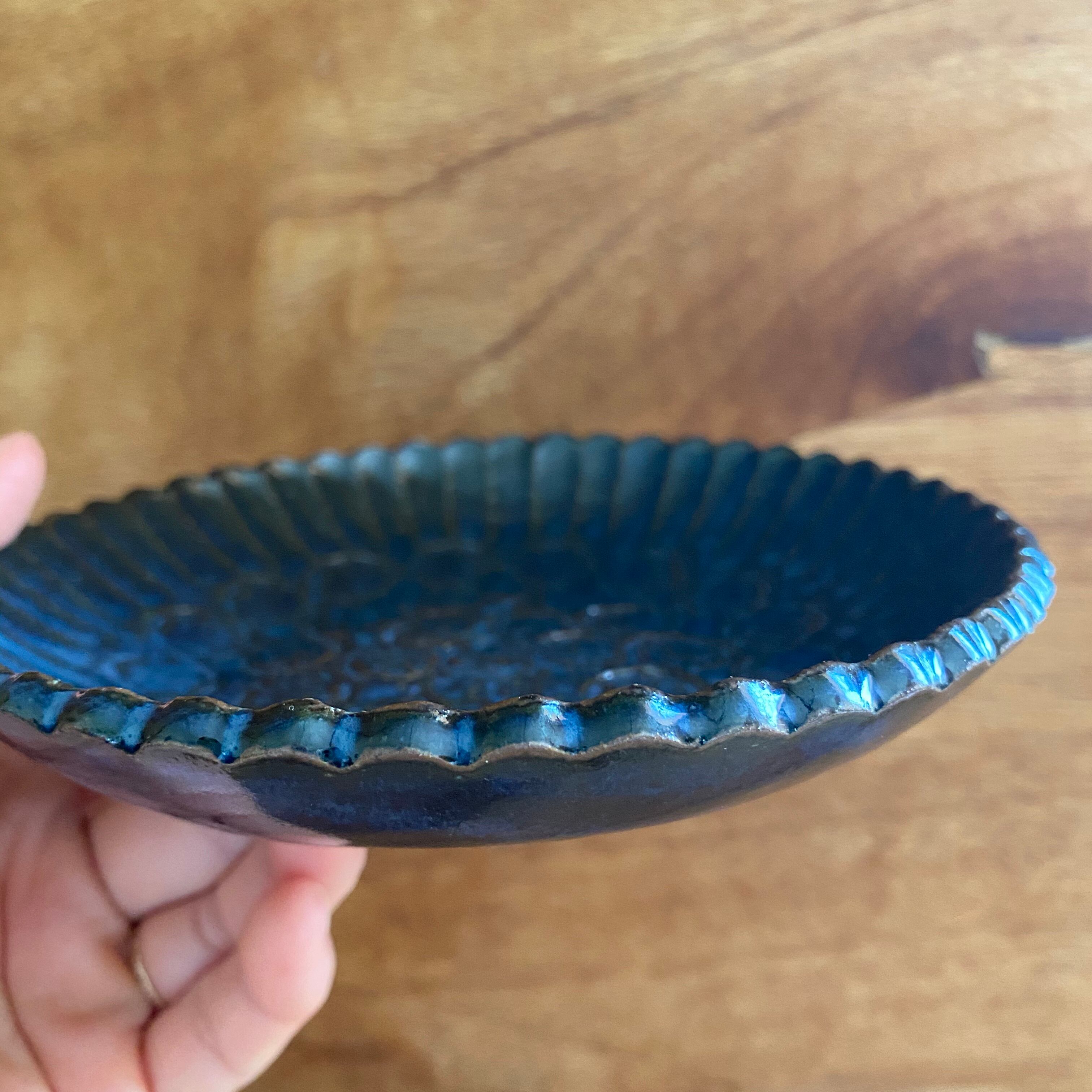 ちひろ窯 輪花皿(小)青