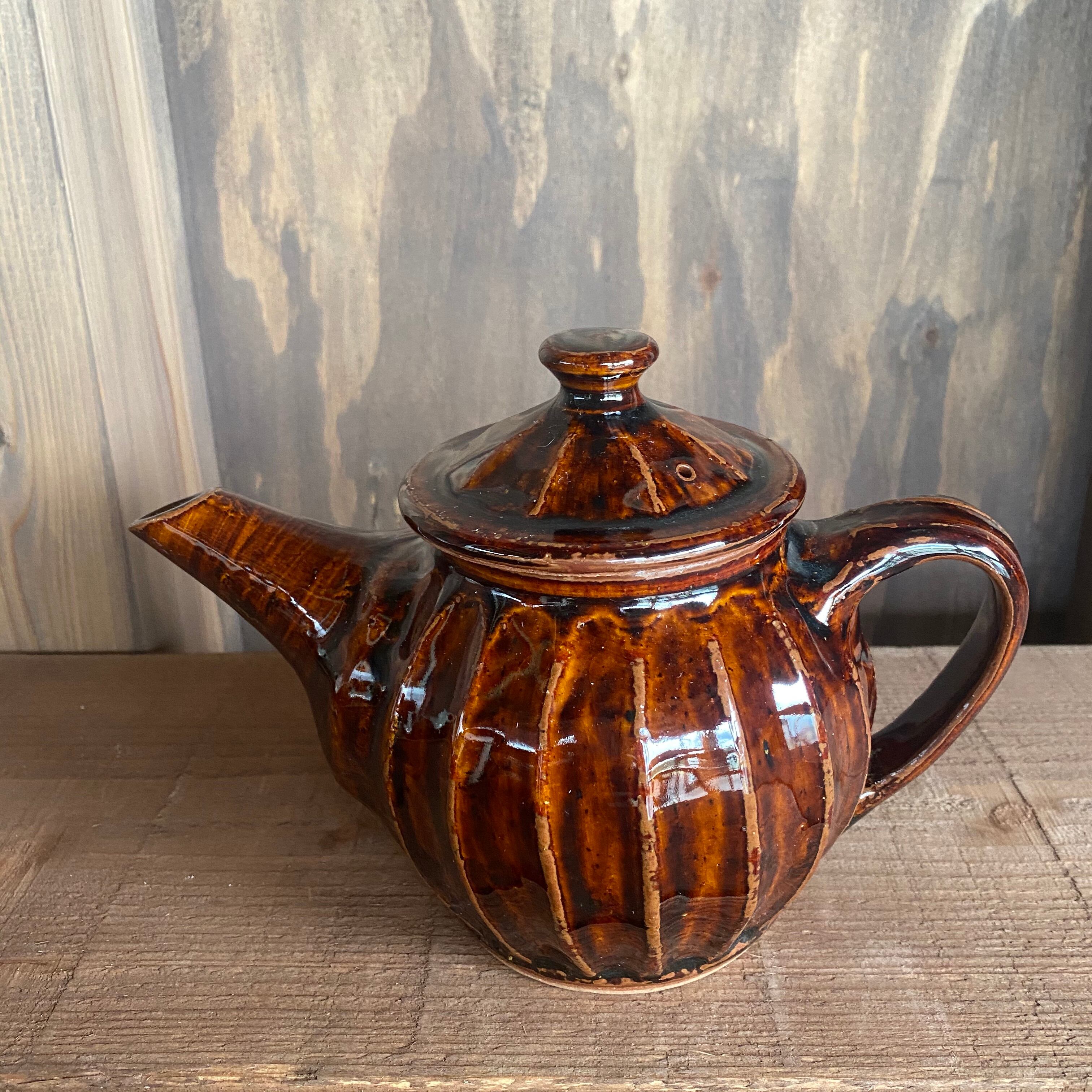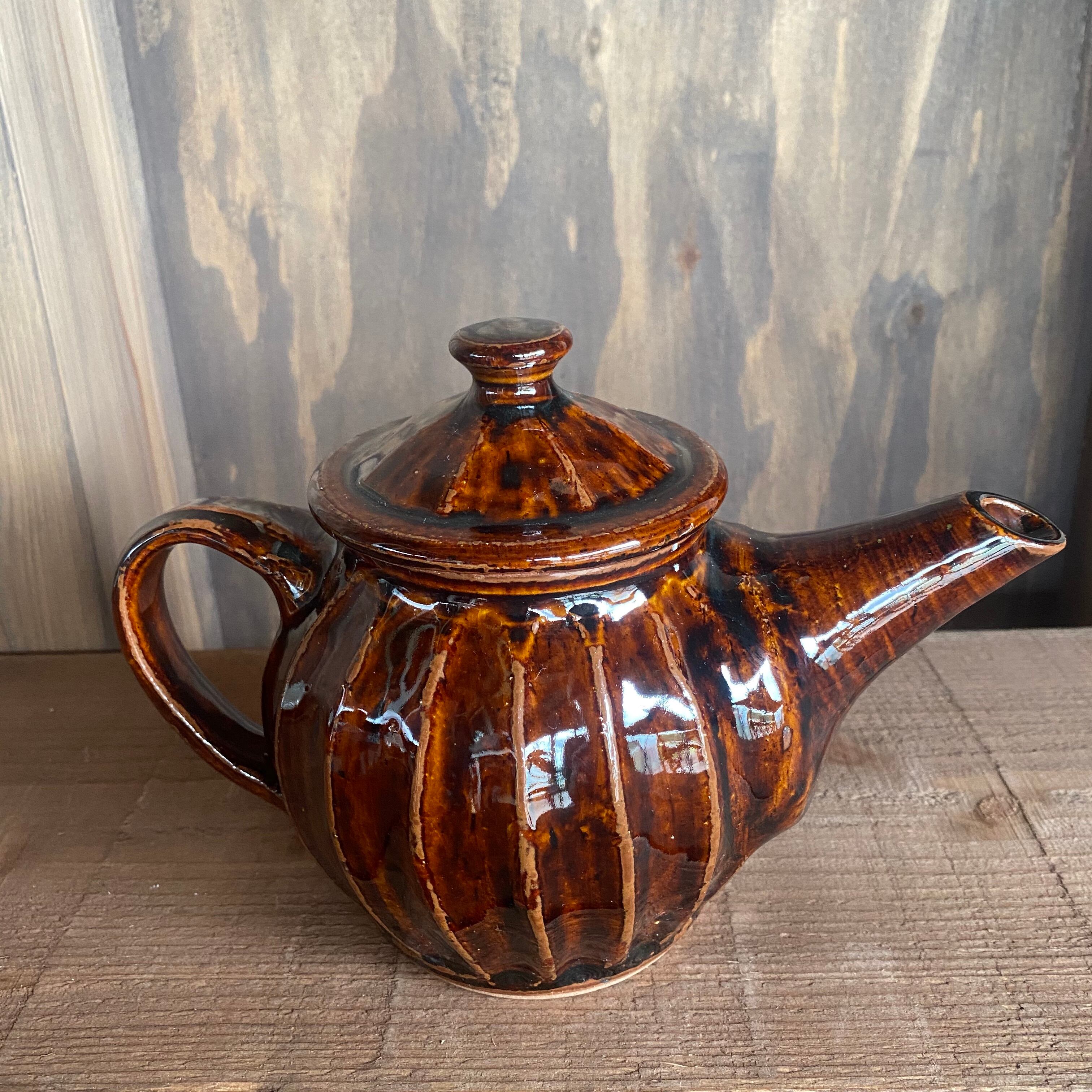 まゆみ窯 ティーポット 特大 鎬手 飴釉