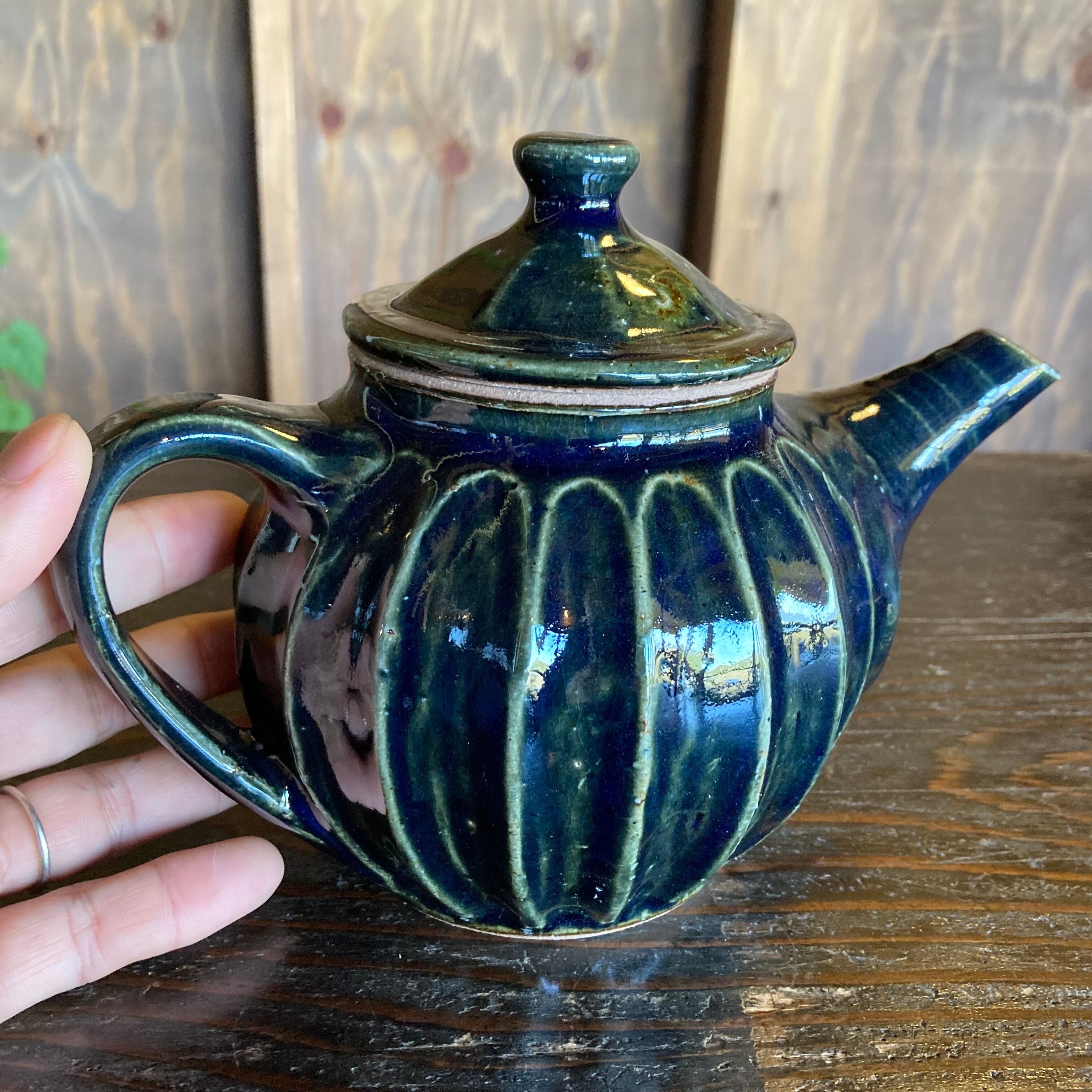 まゆみ窯 ティーポット 特大 鎬手 呉須釉
