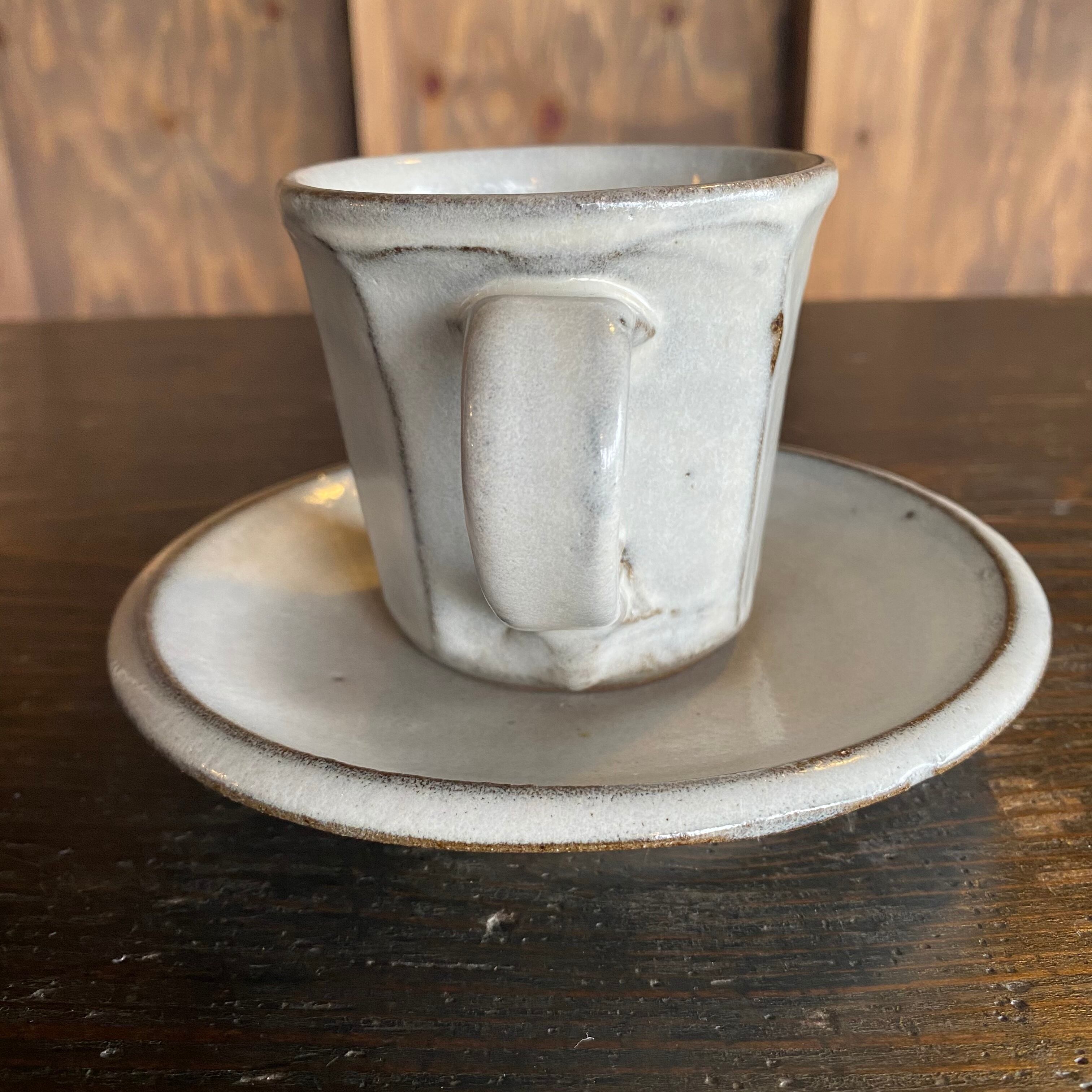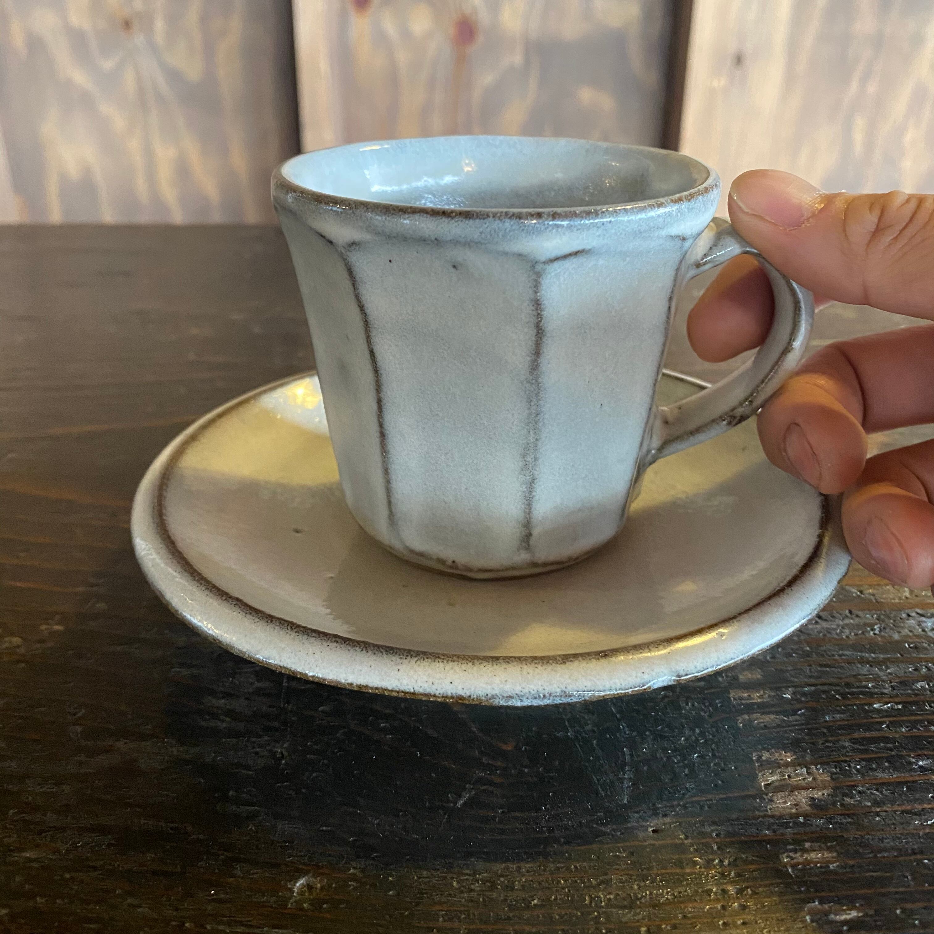 336.俊彦窯 カップ&ソーサー 面取り 糠釉