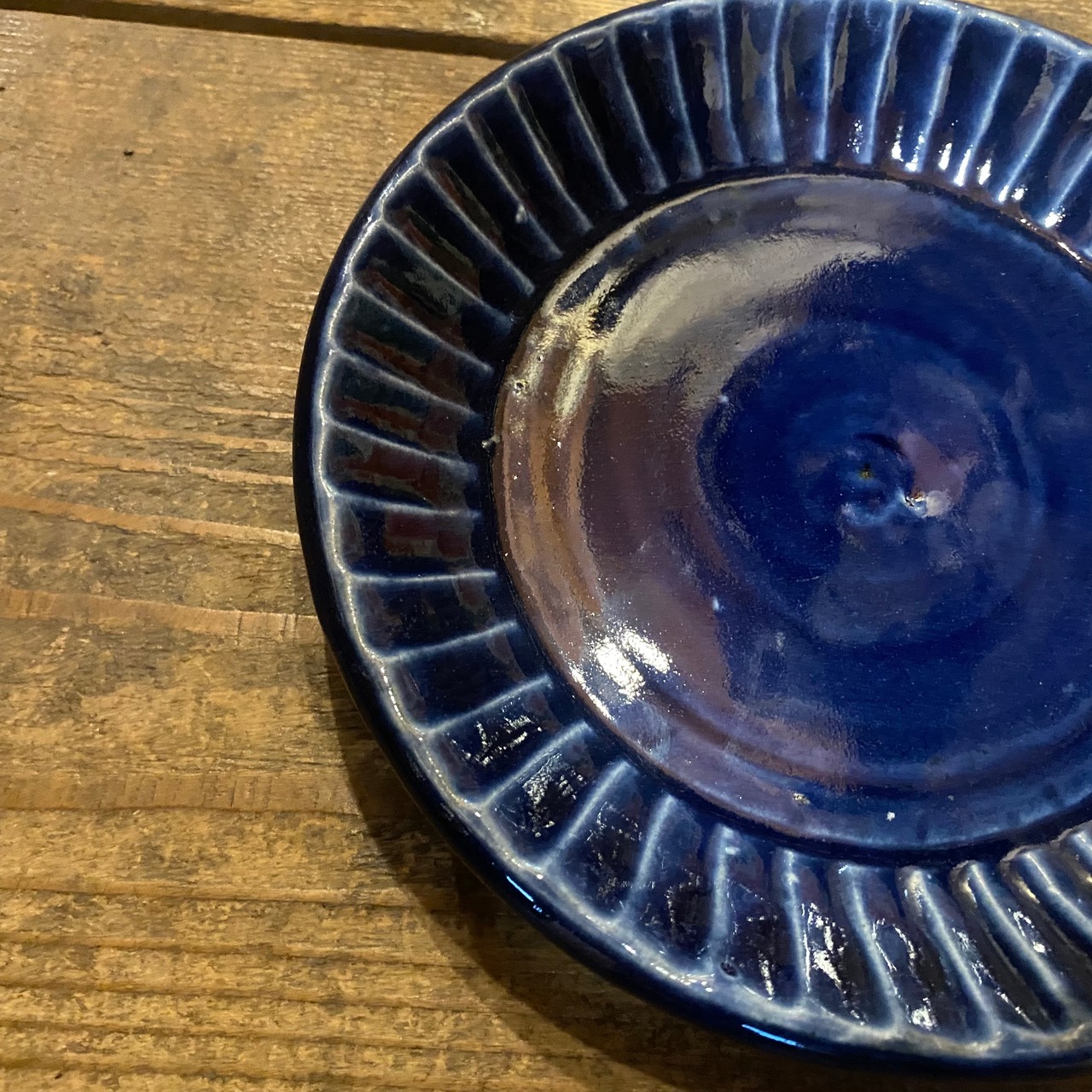 丹波焼 俊彦窯 六寸皿 呉須釉 フチ鎬手