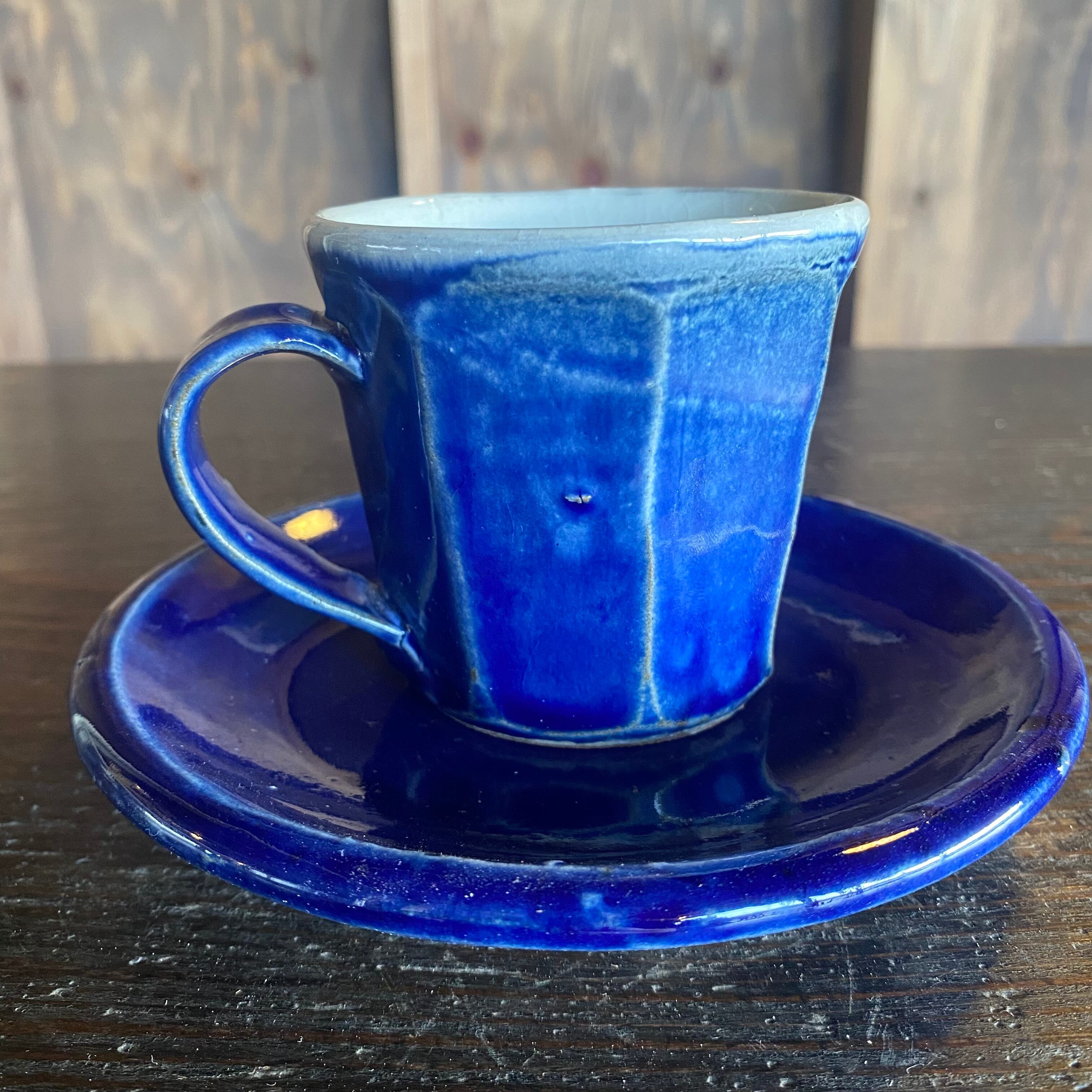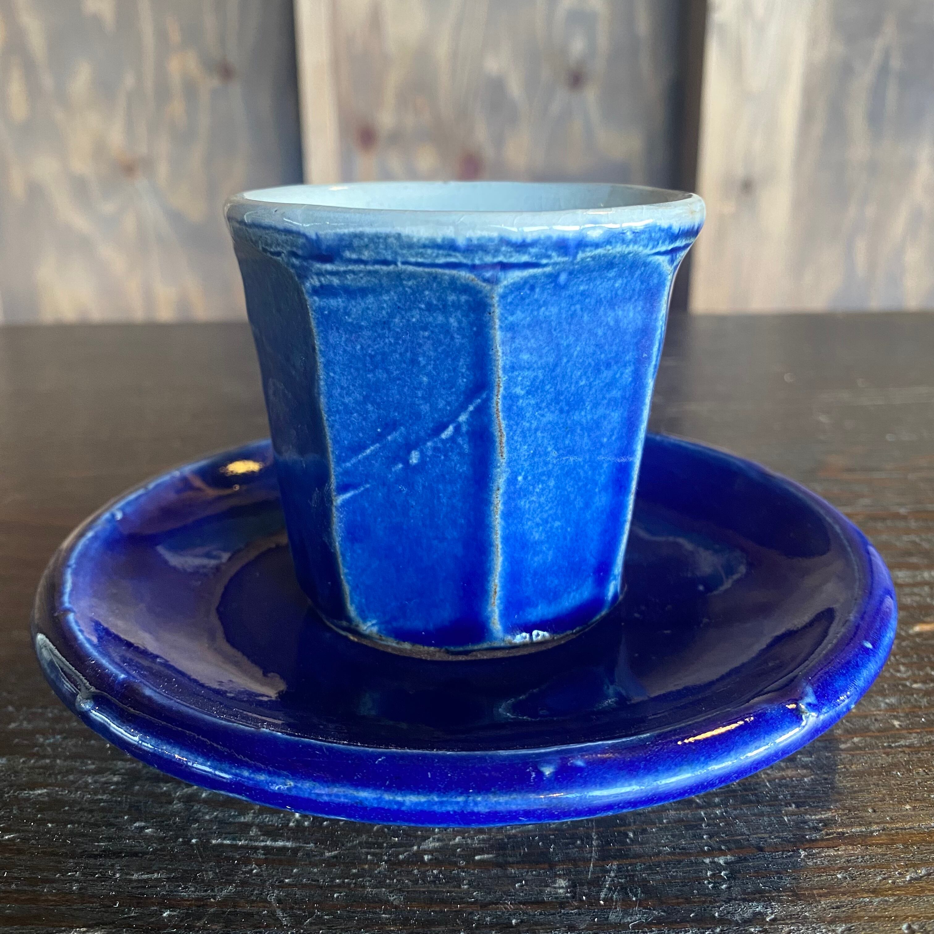 丹波焼 俊彦窯 カップ&ソーサー 面取り 呉須釉