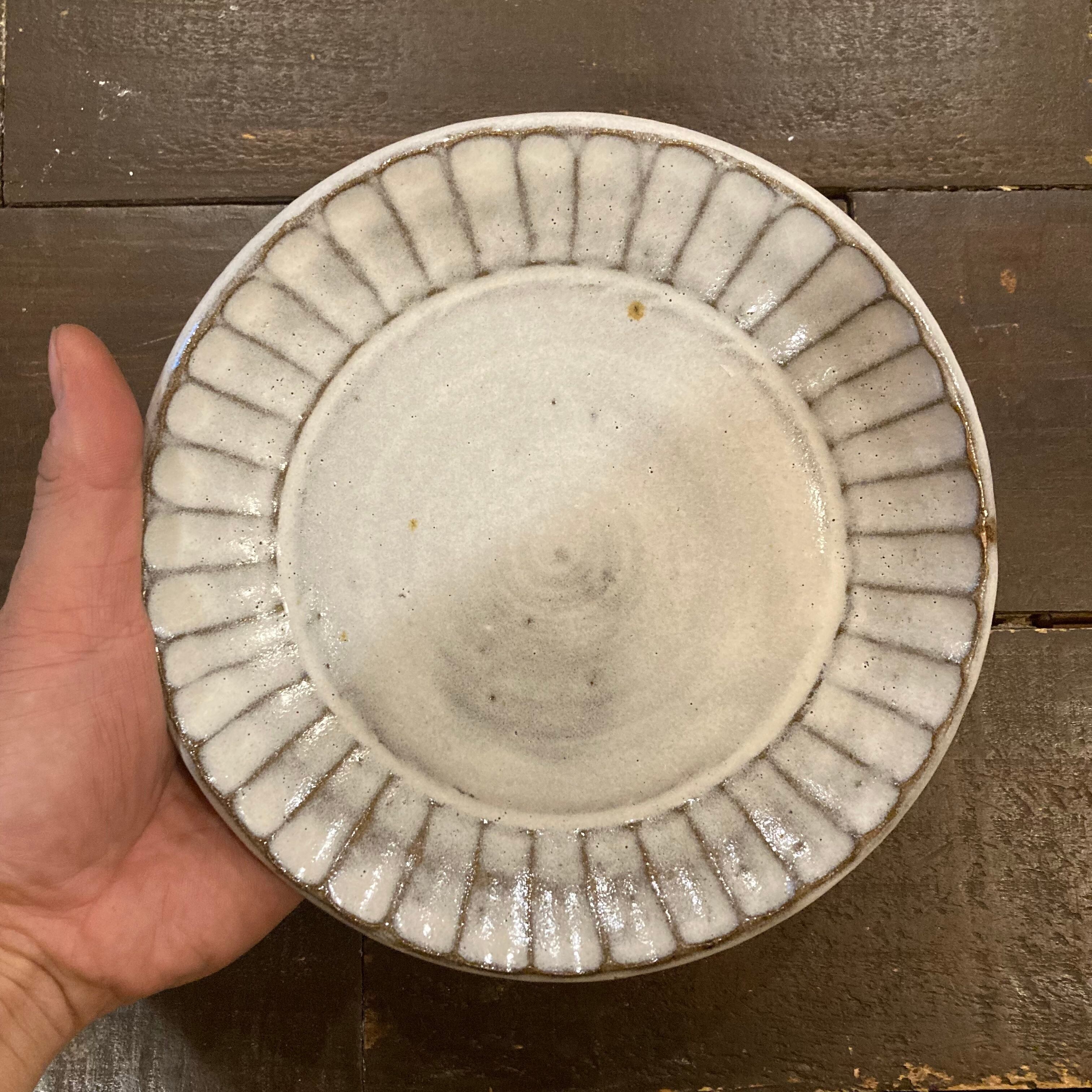 722.俊彦窯 六寸皿 糠釉 フチ鎬手