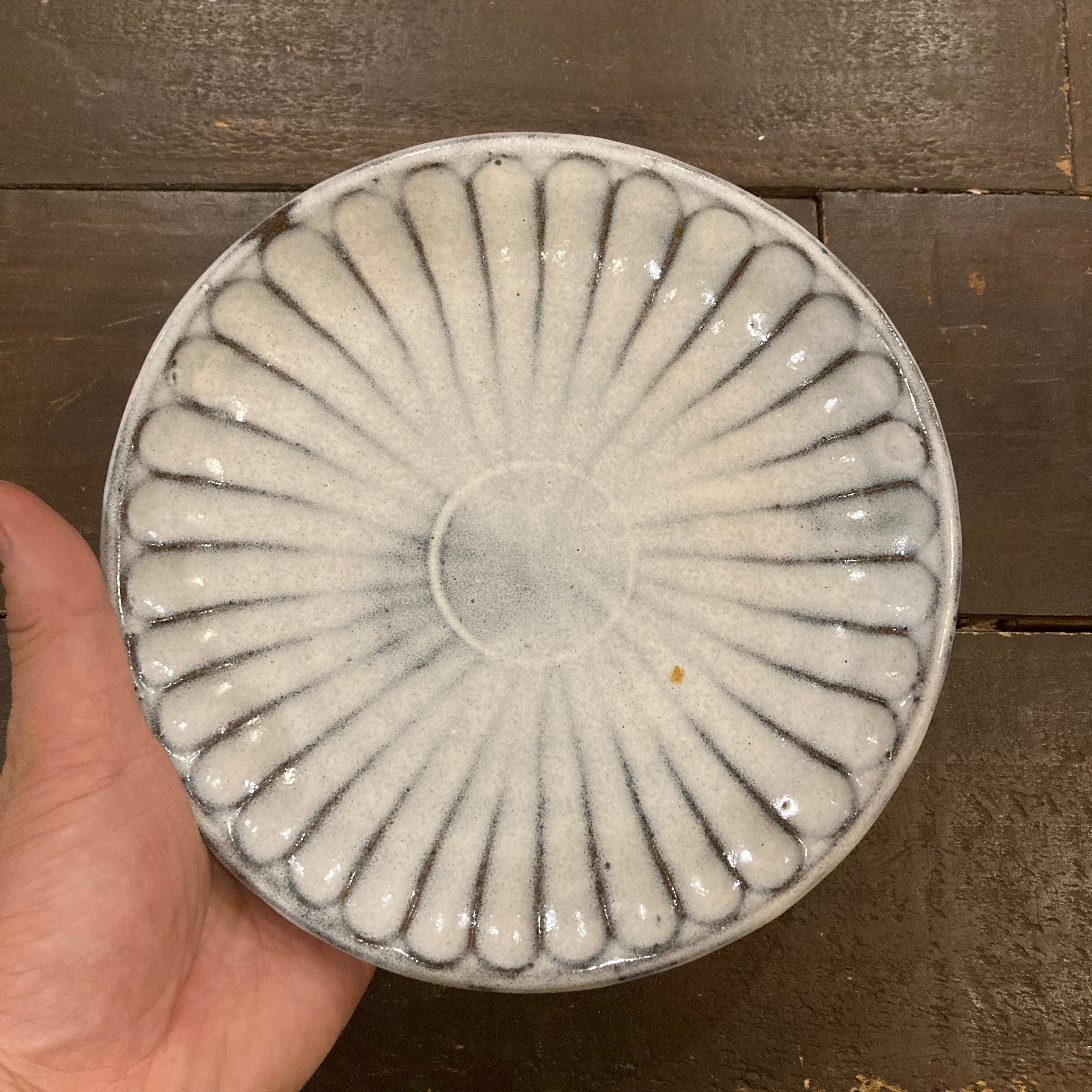 723.俊彦窯 六寸皿 鎬手 糠釉