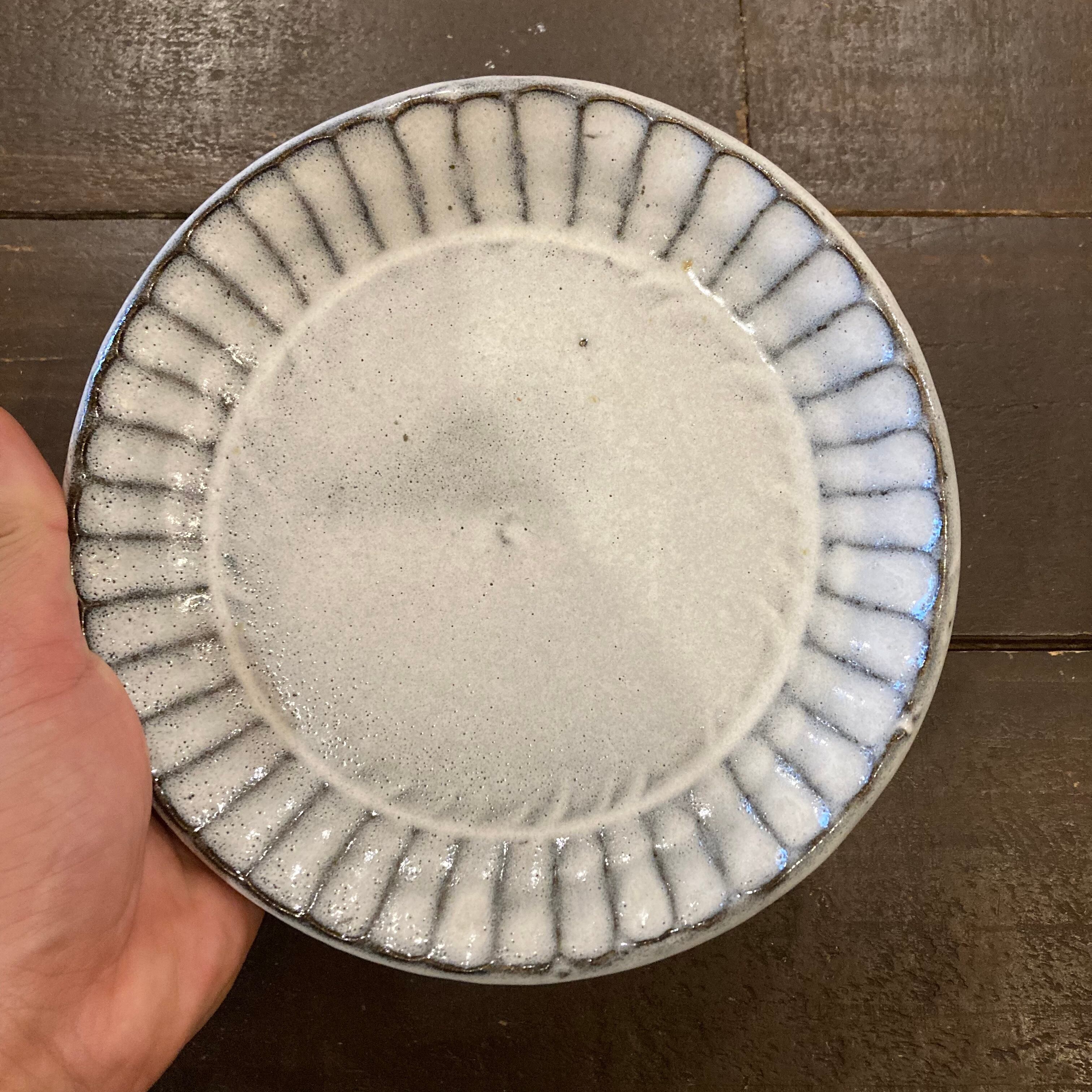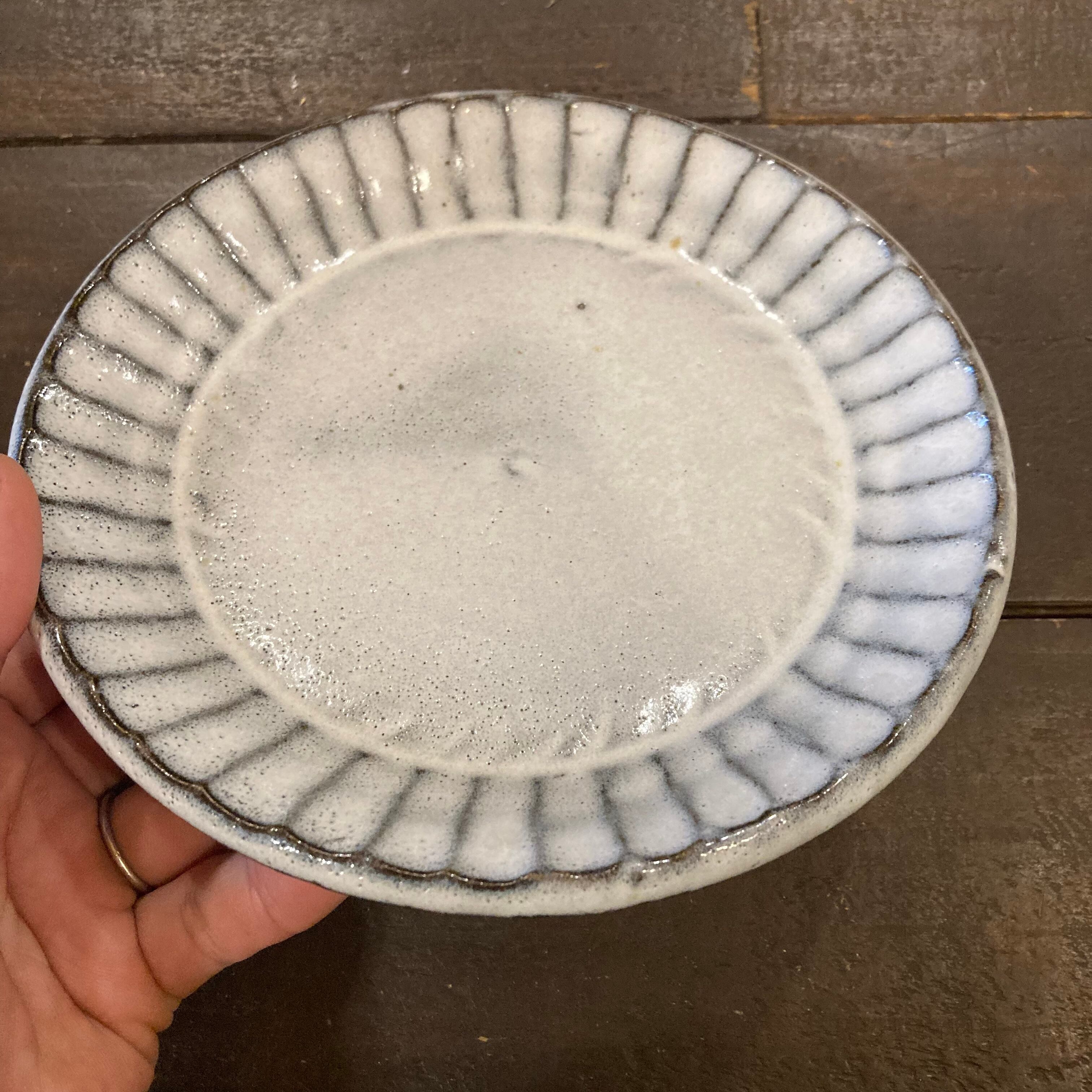 749.俊彦窯 六寸皿 糠釉 フチ鎬手