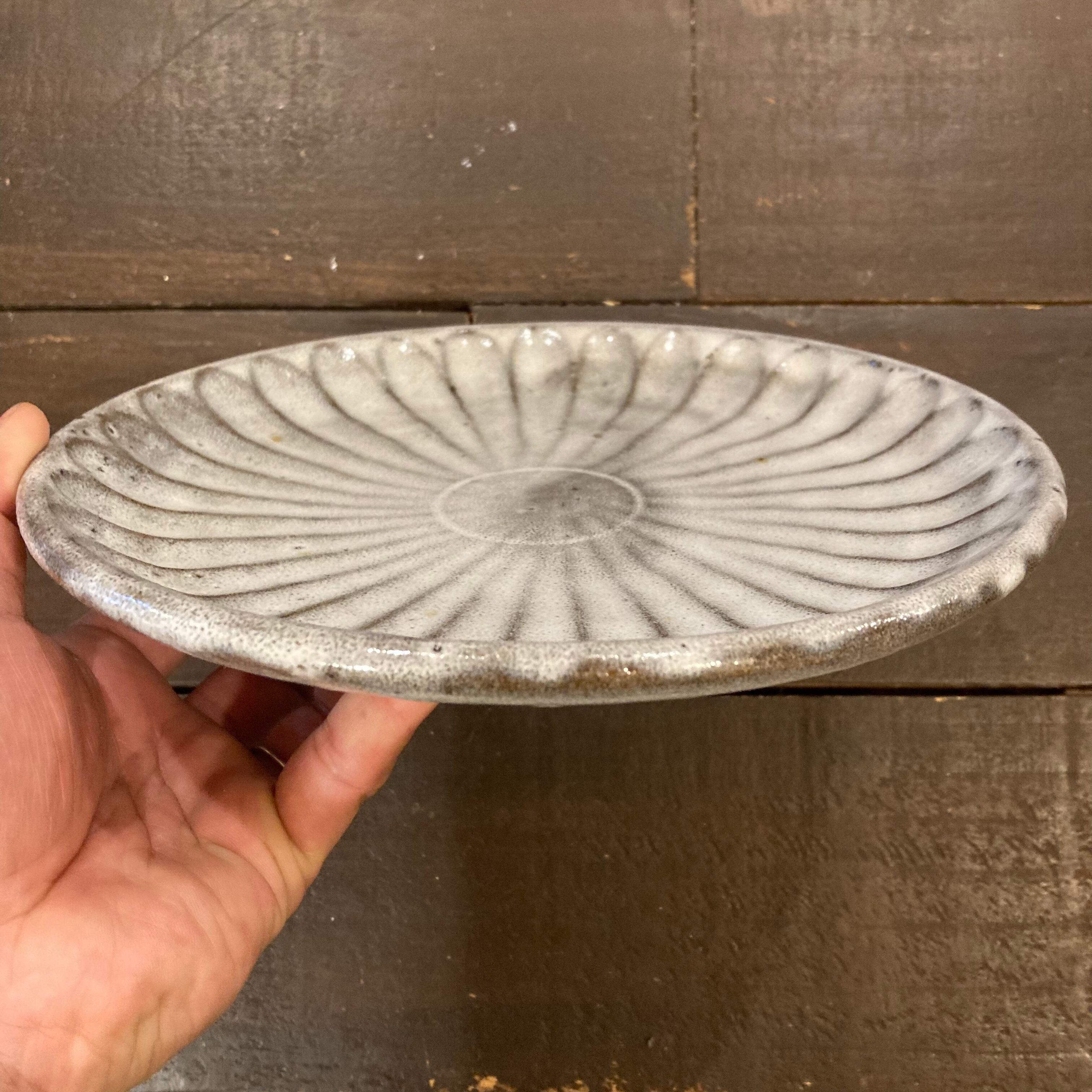759.俊彦窯 七寸皿 鎬手 糠釉