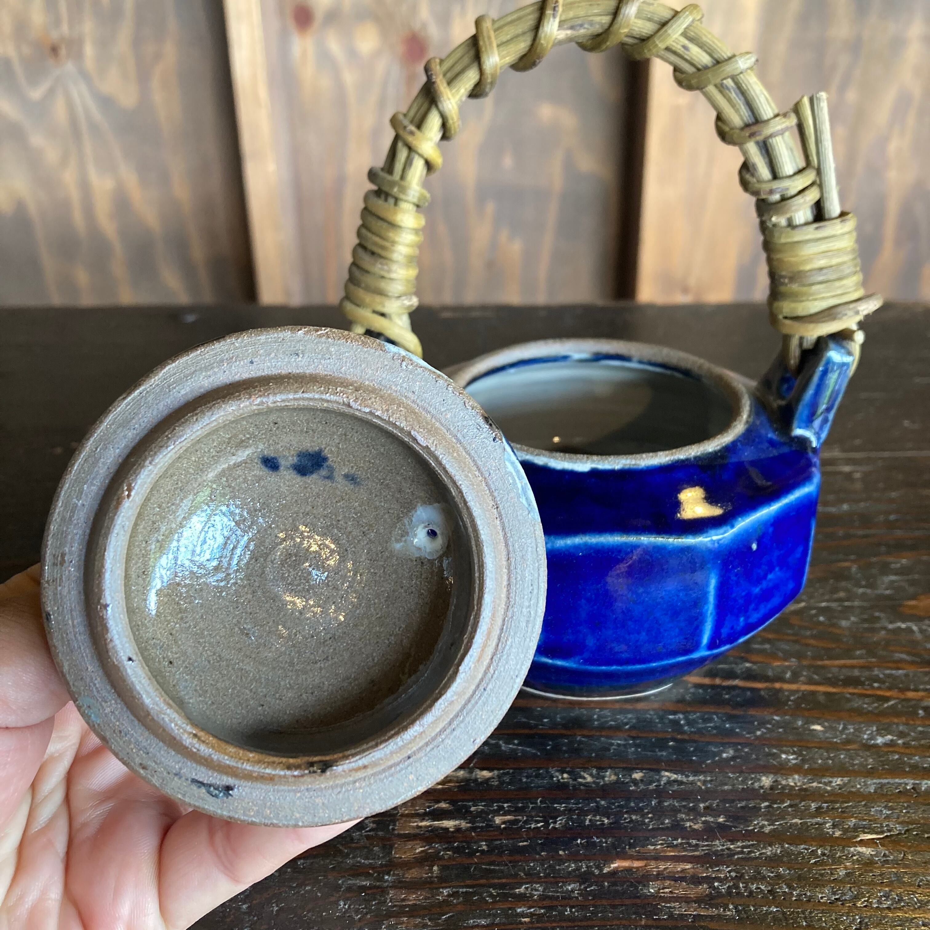 877.俊彦窯 土瓶(小)呉須釉 面取り